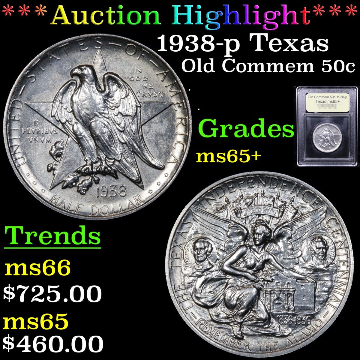 ***Auction Highlight*** 1938-p Texas Old Commem Half Dollar 50c Graded GEM+ Unc By USCG (fc)