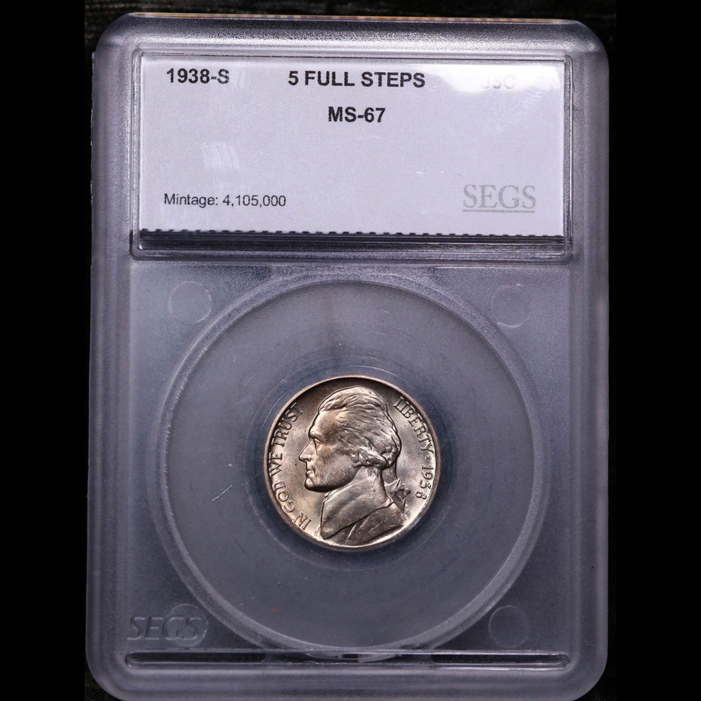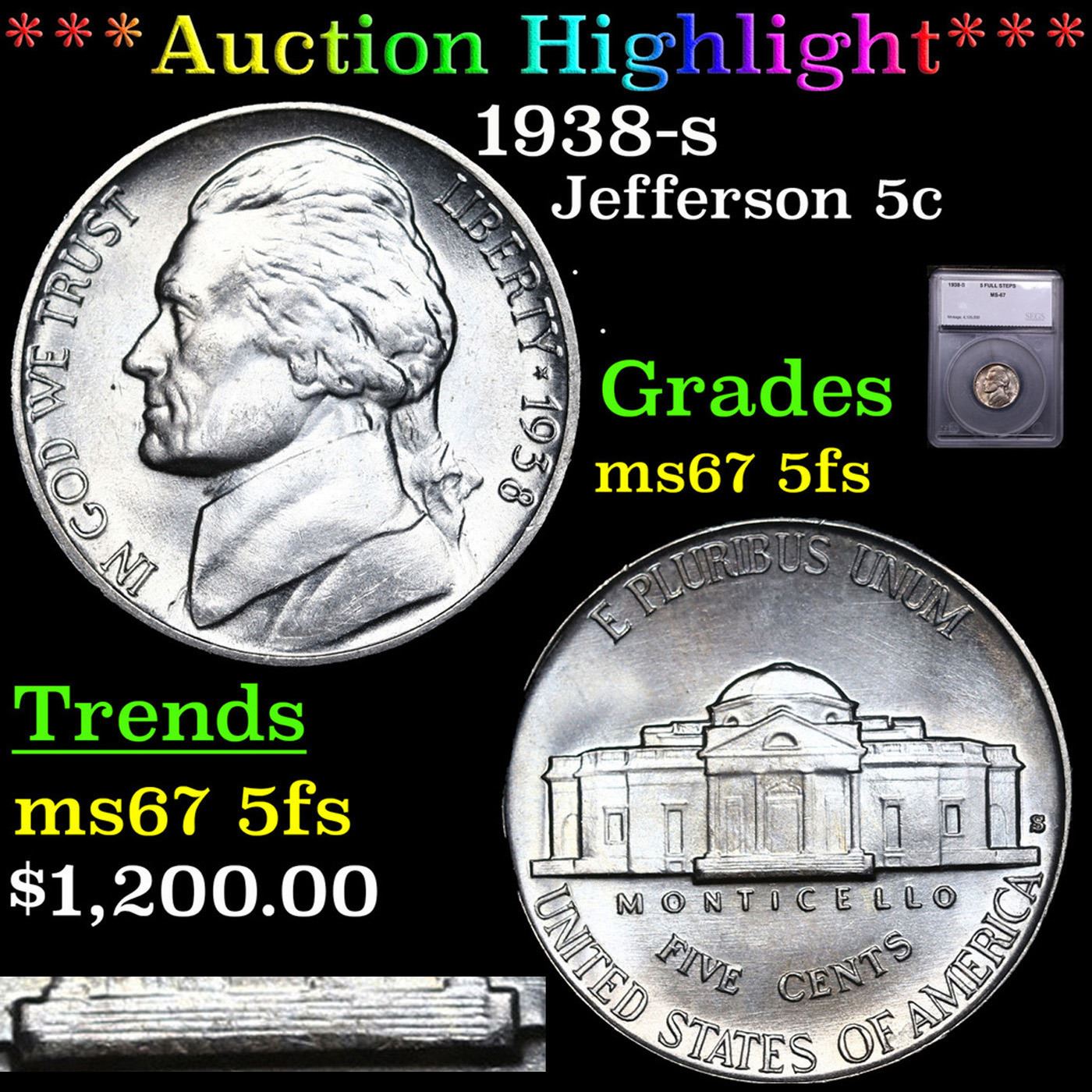***Auction Highlight*** 1938-s Jefferson Nickel 5c Graded ms67 5fs By SEGS.