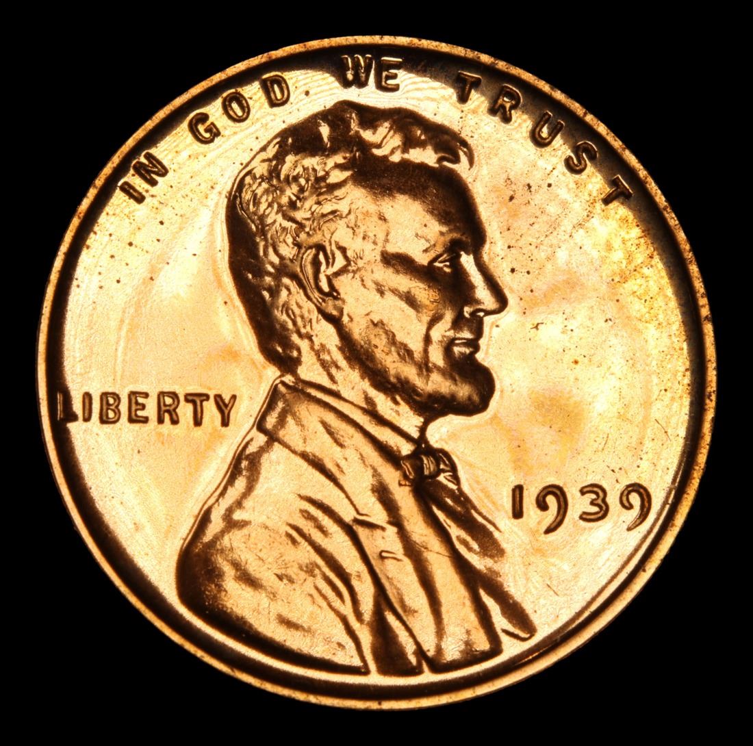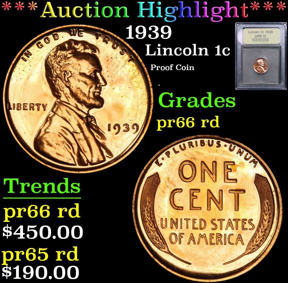***Auction Highlight*** 1939 Proof Coin . Lincoln Cent 1c Graded Gem+ Proof Red By USCG.