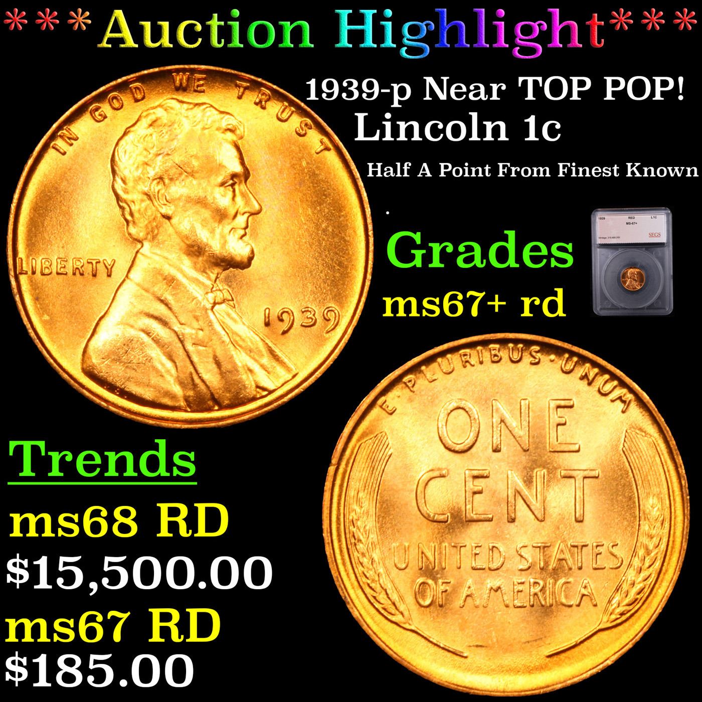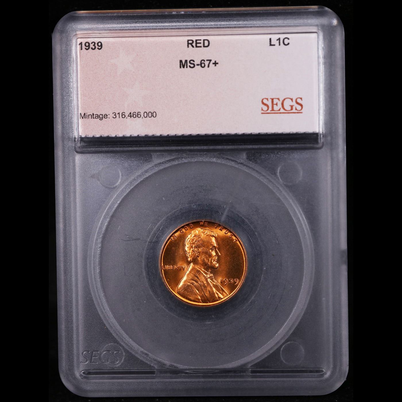 ***Auction Highlight*** 1939-p Near TOP POP! Lincoln Cent 1c Graded ms67+ rd BY SEGS. A Key Date's Pick, Bid to Win Coin