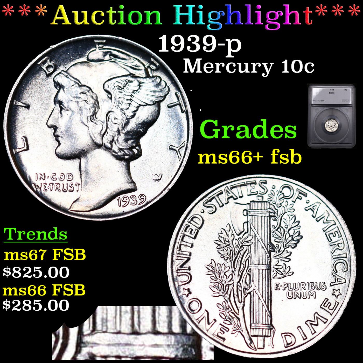 ***Auction Highlight*** 1939-p Mercury Dime 10c Graded ms66+ fsb By SEGS. A Corey's Pick, Bid to Win Coin