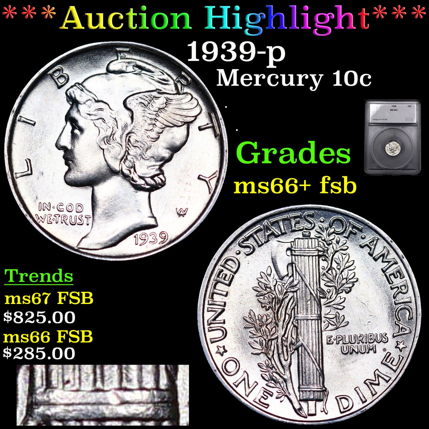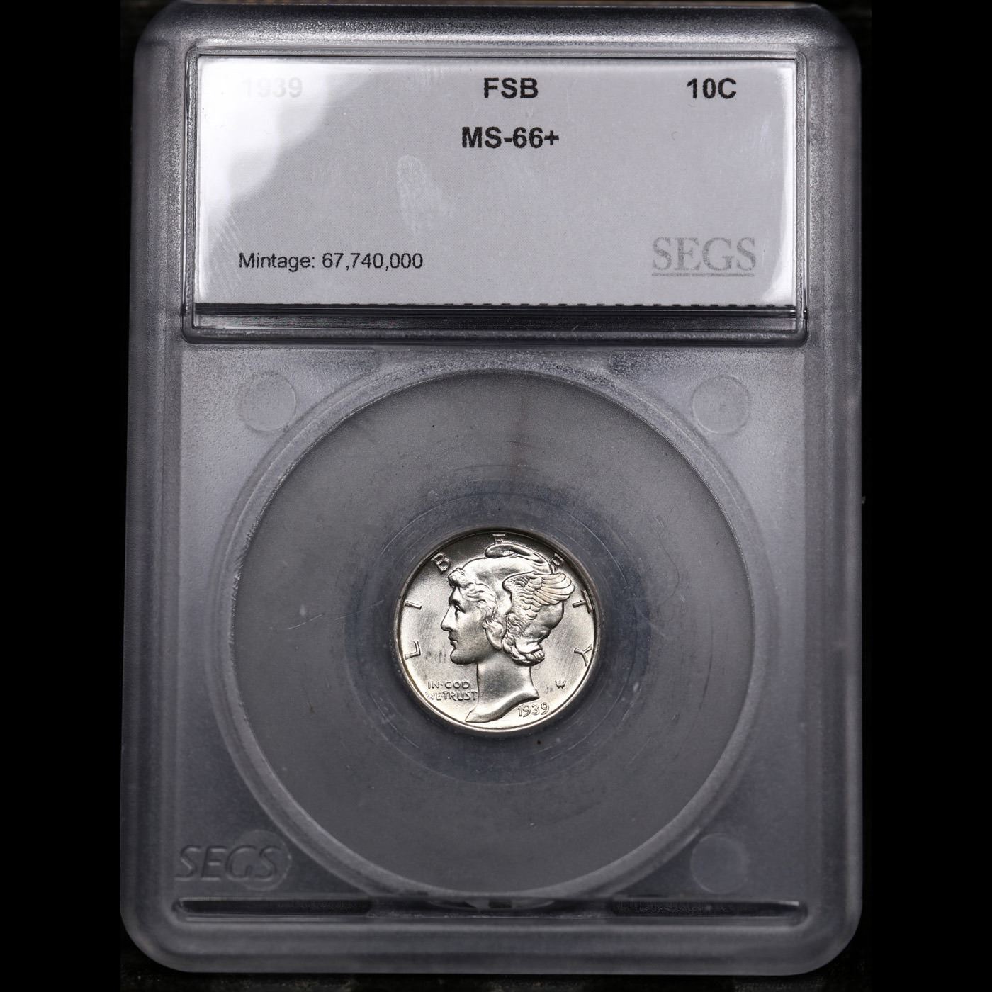 ***Auction Highlight*** 1939-p Mercury Dime 10c Graded ms66+ fsb By SEGS. A Corey's Pick, Bid to Win Coin