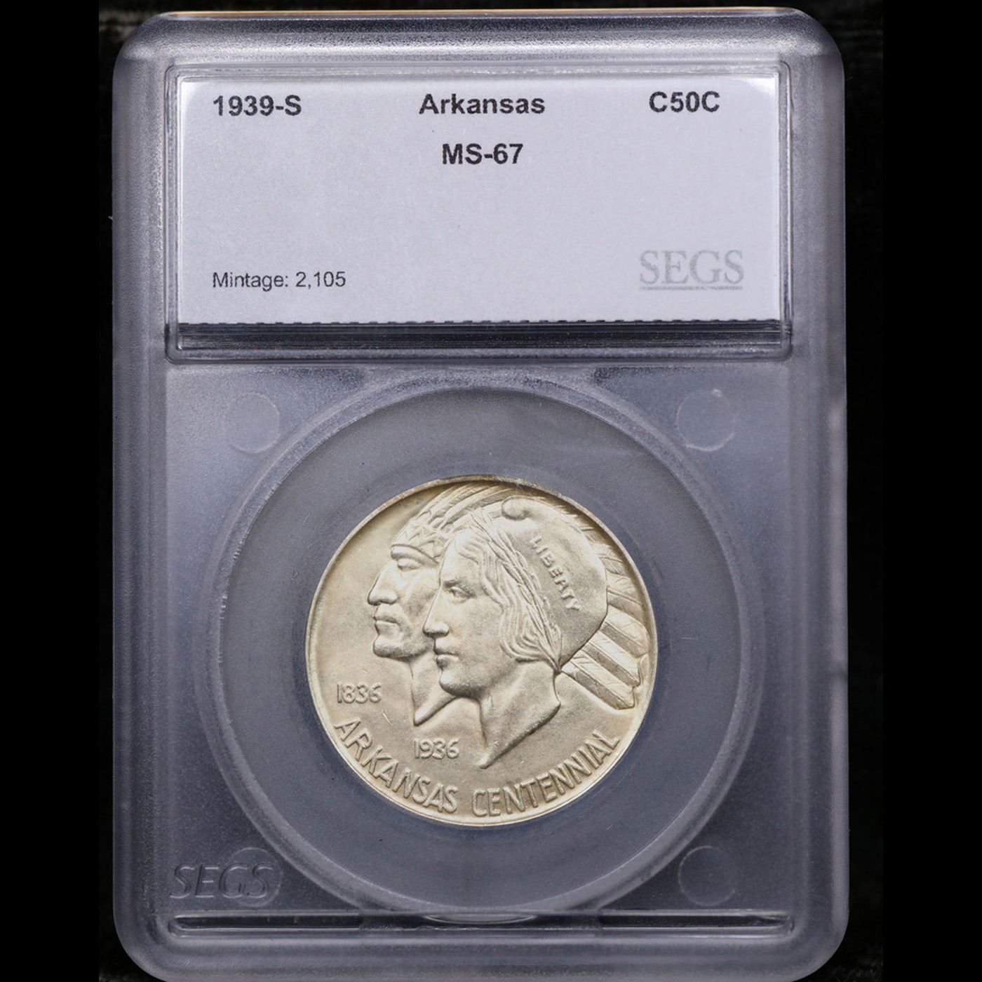 ***Auction Highlight*** 1939-s Arkansas Old Commem Half Dollar Near TOP POP! 50c Graded ms67 BY SEGS