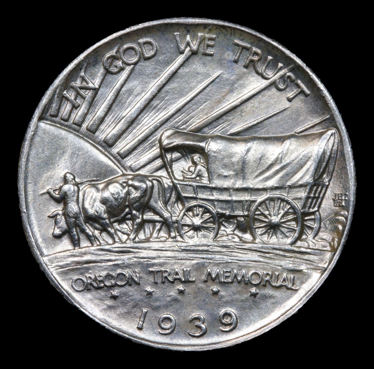***Auction Highlight*** 1939-s Oregon Trail Old Commem Half Dollar 50c Graded GEM+ Unc By USCG. Up for Auction is the key date for the Oregon Trail Commemorative, the 1939-s. The Oregon Trail, one of collectors favorites in the entire old Commemorative series was made in 1926, 1928, 1933, 1934, 1936, 1937, 1938 and 1939, in al three mints (not in every year), a total of 14 coins represent the entire Oregon trail collection. Of these 14 date/mm combinations, the 1939 Is the scarce Date of the series and the San Francisco ssue of 1939 is the absolute “Chase Coin” of the series. A Corey's Pick, Bid to Win Coin