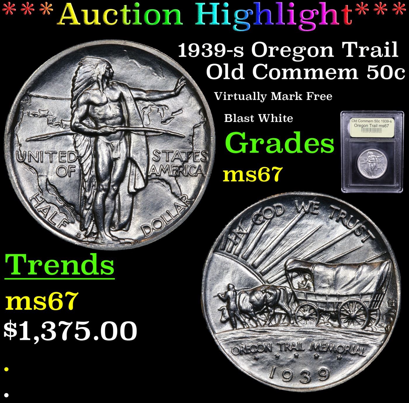 ***Auction Highlight*** 1939-s Oregon Trail Old Commem Half Dollar 50c Graded GEM++ Unc By USCG. The Denver Mint struck more than 20 million Morgan dollars in 1921, but remarkably few survivors exhibit any degree of proof like mirroring in the fields. This coin is one of just a handful of Uncirculated Proof like examples. The devices display a softly frosted texture, and the design definition is above-average for the issue. A pleasing, essentially brilliant representative of this sole D-mint Morgan