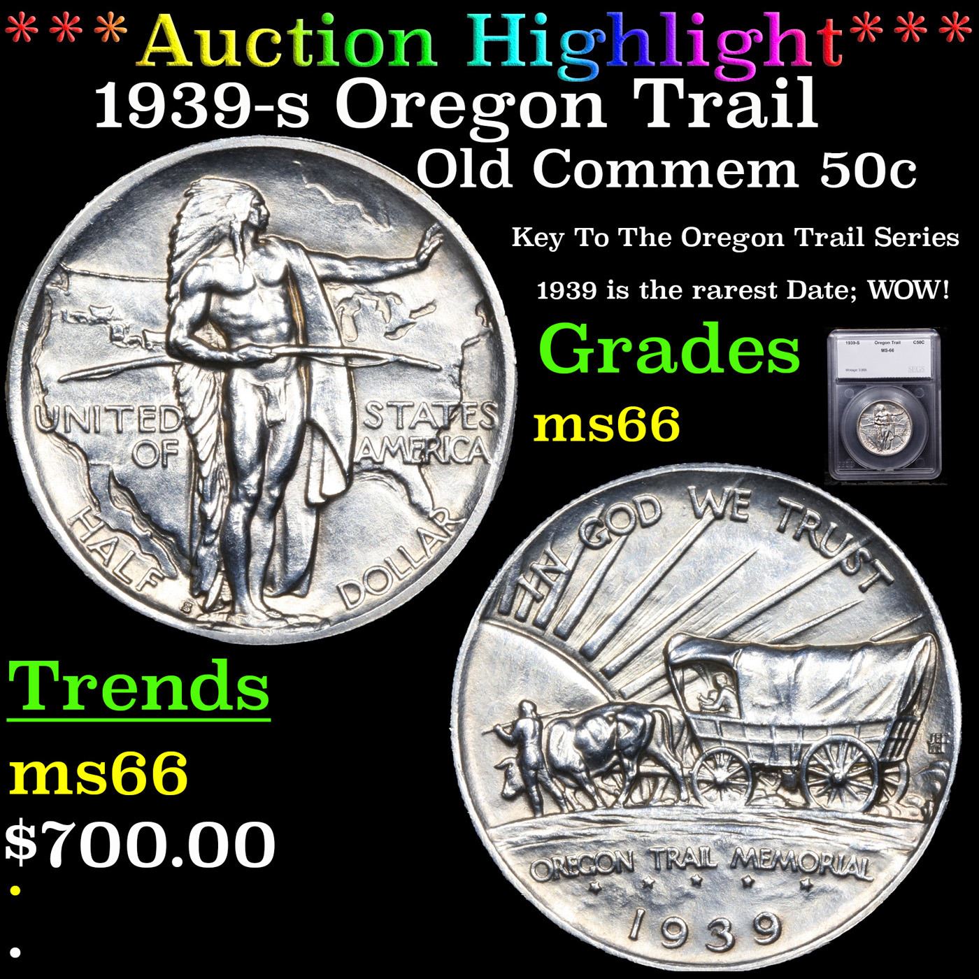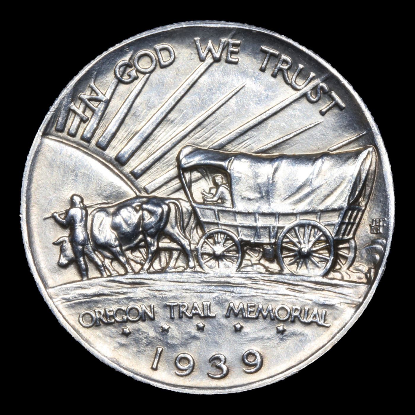 ***Auction Highlight*** 1939-s Oregon Trail Old Commem Half Dollar 50c Graded ms66 BY SEGS. Despite having one of the most beautiful design in the series, the Oregon Trail Half Dollar is usually cited as the best example of the abuses which began to take place within commemorative coin programs. Between the years 1926 and 1939, the coins were minted with eight different dates at three different mint facilities for varying prices, in an attempt to make as much money as possible.The obverse of the Oregon Trail Half Dollar was designed by Laura Gardin Fraser. It features a covered wagon drawn by two oxen moving west, towards the setting sun. (Officially, the US Mint states this as the obverse of the coin, although the designers of the coin and many collectors consider this the reverse of the coin.)The other side of the coin was designed by James Earle Fraser. The full figure of a Native American in headdress is shown. He stands before a map of the United States with the Oregon Trail marked, with his left hand outstretched to the east and a bow in his right hand spanning the continent. The maximum authorized mintage for the program was set at a lofty 6 million pieces, which was the largest authorization for commemorative coin thus far. For the first year of issue coins were struck at the Philadelphia Mint and San Francisco Mint and offered by the Oregon Trail Memorial Association for $1 each.Since the law authorizing the coins did not include a specific time frame or mint, the Association requested more coins struck in subsequent years and from different mints. Additional coins would be minted in 1928, 1933, 1934, 1936, 1937, 1938, and 1939, variously at the Philadelphia, Denver, and San Francisco Mints. Individual coin pricing varied from $1.50 to $2.00 to $1.60. The final two years were sold as complete sets from all three mints for $6.25 and later $7.50 each.When Buying an Oregon Trail Commemorative, regardless of year and mint the Points to first show wear are the Indian’s hand and thigh on the obverse and the ox and the bows of the wagon’s cover on the reverse, these are the high points. A Key Date's Pick, Bid to Win, Don't let it get Away, you might not find its equal Coin