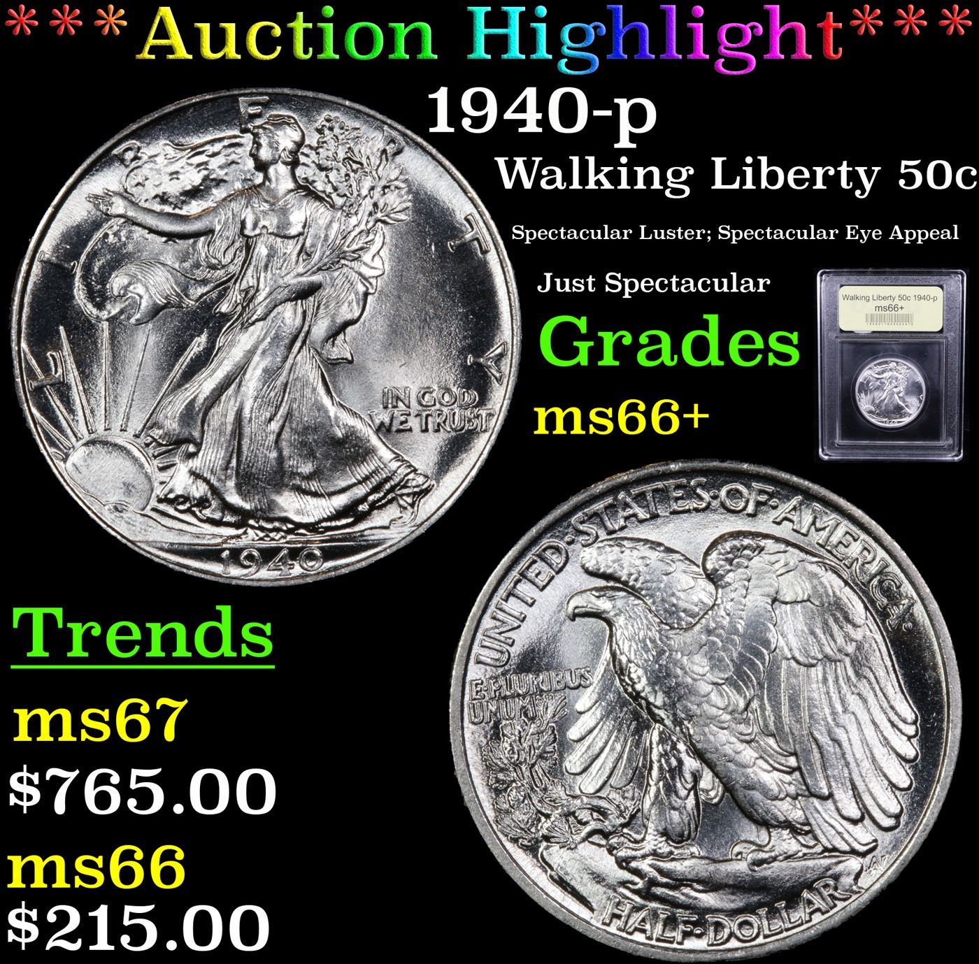 ***Auction Highlight*** 1940-p Walking Liberty Half Dollar 50c Graded GEM++ Unc By USCG (fc)