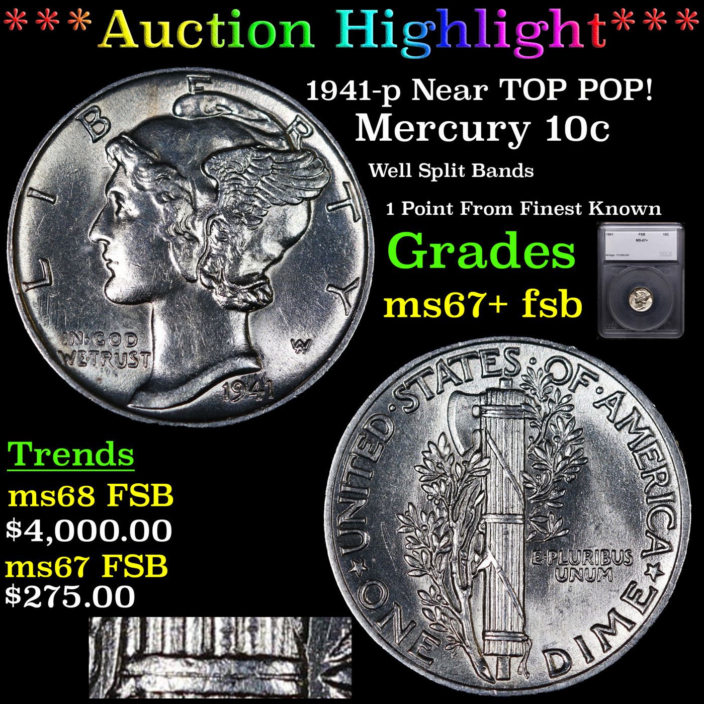 ***Auction Highlight*** 1941-p Mercury Dime Near TOP POP! 10c Graded ms67+ fsb BY SEGS (fc)