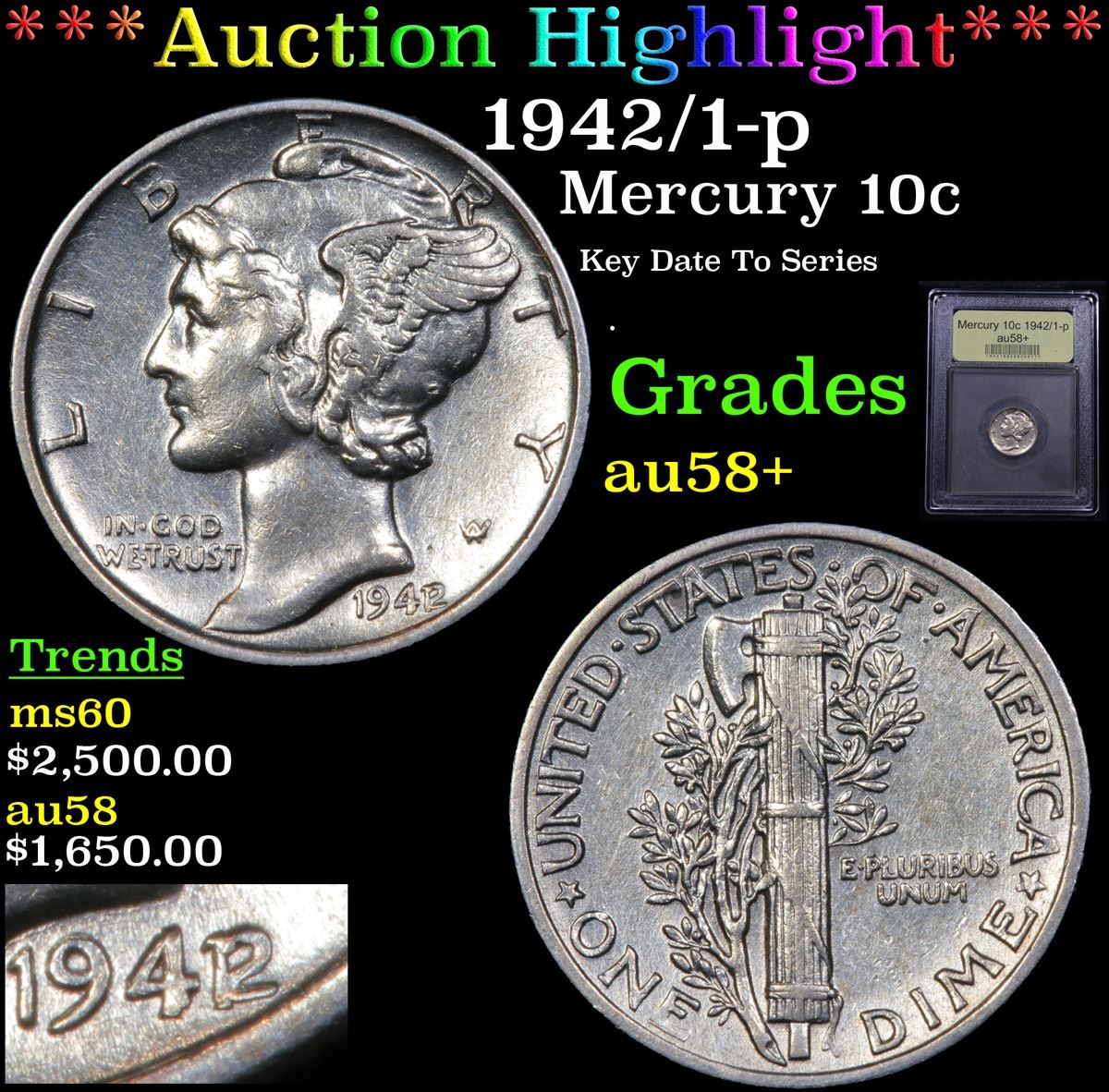 ***Auction Highlight*** 1942/1-p Mercury Dime 10c Graded Choice AU/BU Slider+ By USCG. A Corey's Pick, Bid to Win, Don't let it get Away, you might not find its equal Coin
