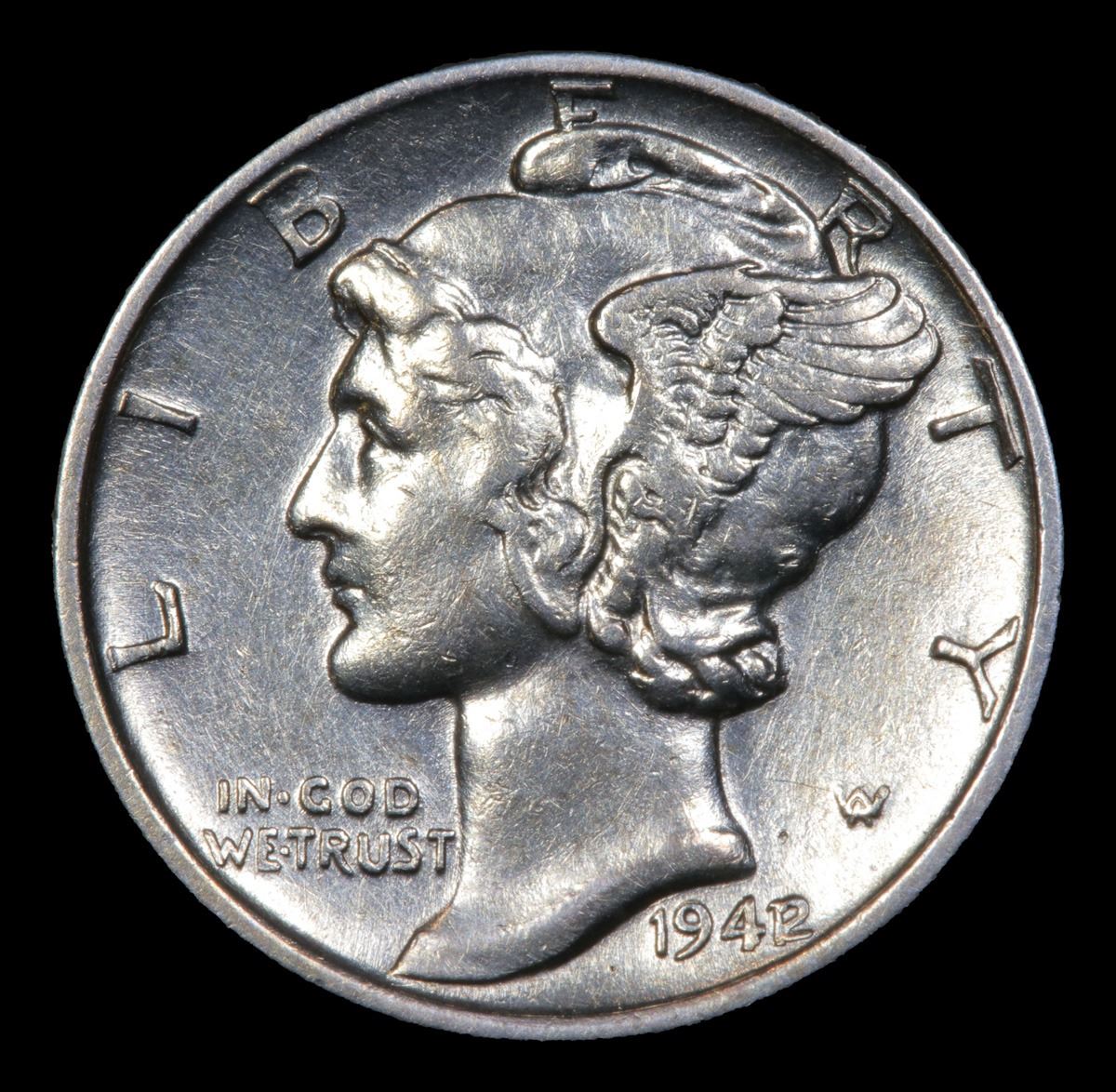 ***Auction Highlight*** 1942/1-p Mercury Dime 10c Graded Choice AU/BU Slider+ By USCG (fc)