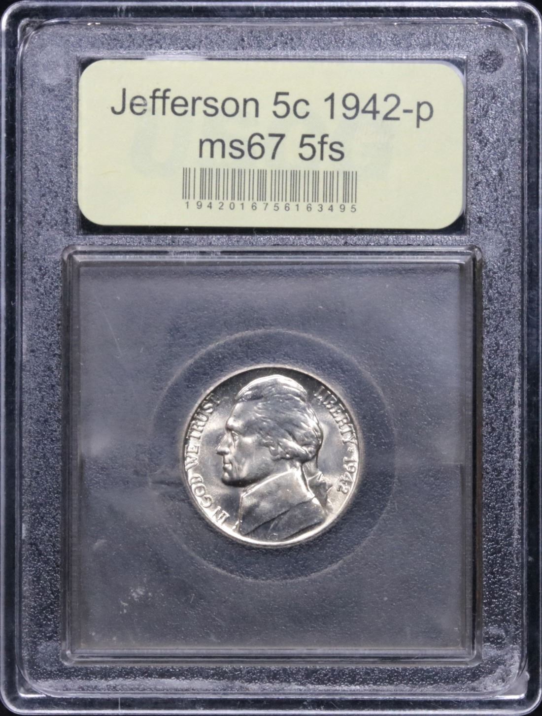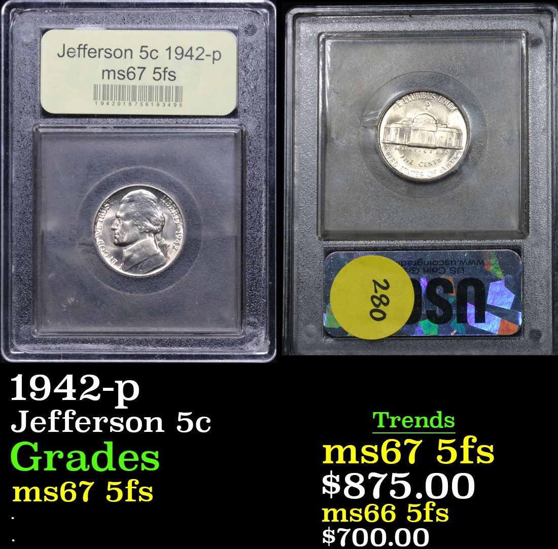 ***Auction Highlight*** 1942-p Jefferson Nickel 5c Graded GEM++ 5fs By USCG.