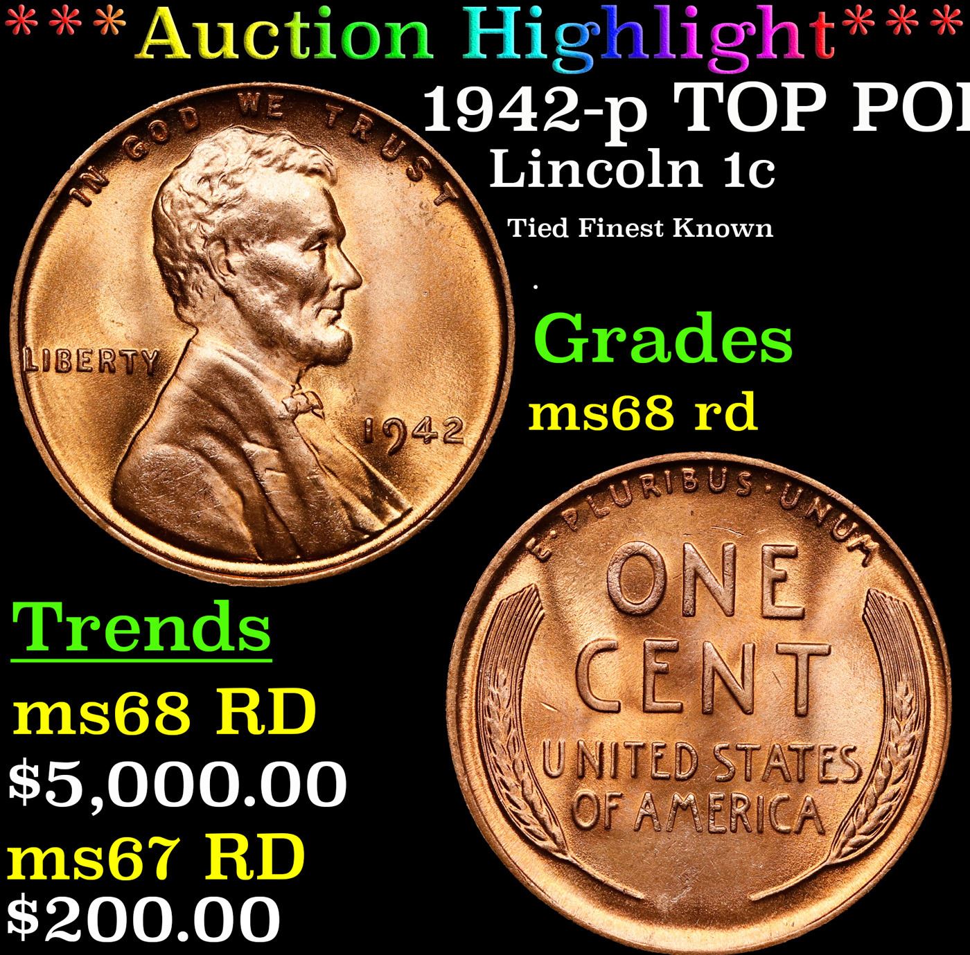 **Auction Highlight*** 1942-p TOP POP! Lincoln Cent 1c Graded GEM+++ Unc RD By USCG.