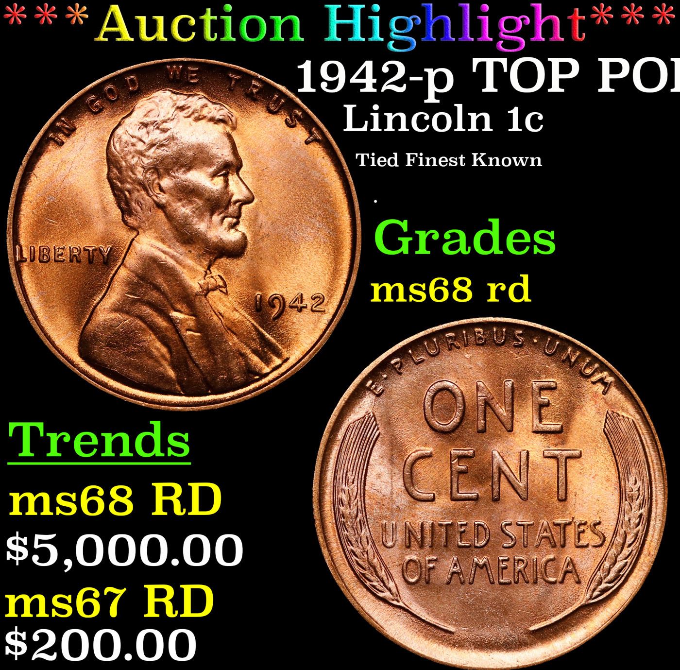 **Auction Highlight*** 1942-p TOP POP! Lincoln Cent 1c Graded GEM+++ Unc RD By USCG.