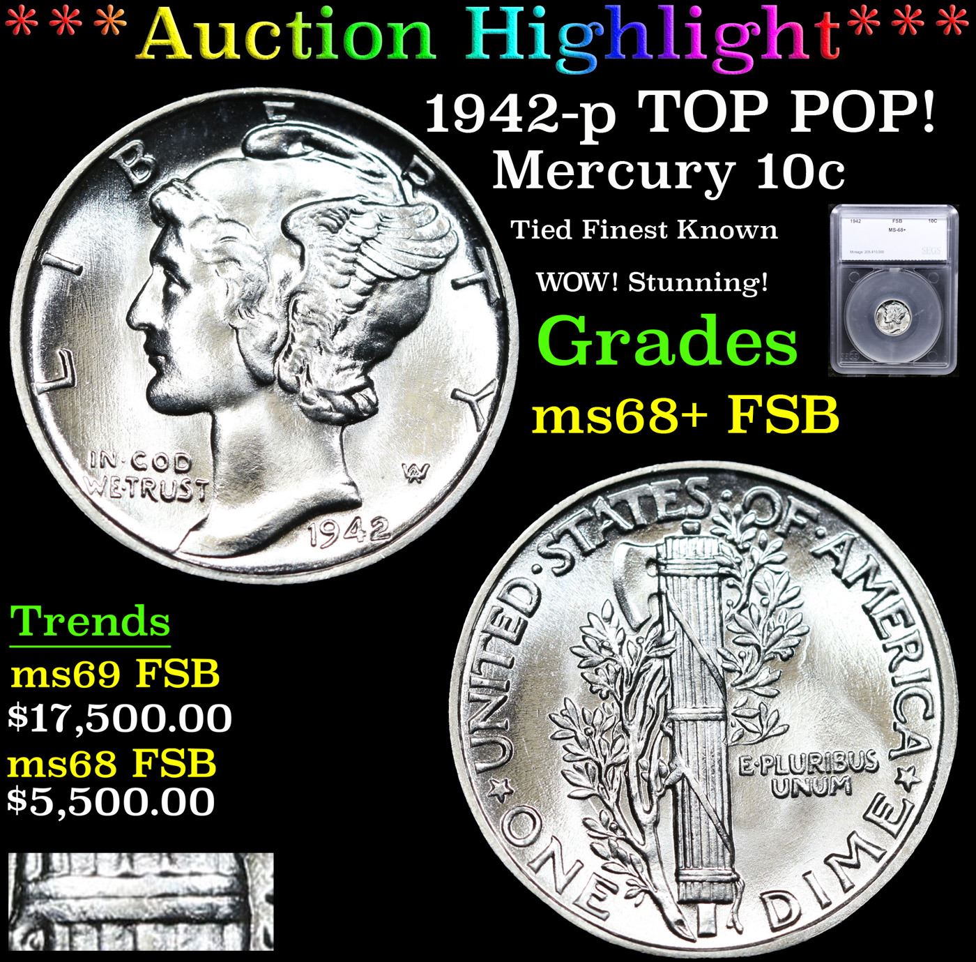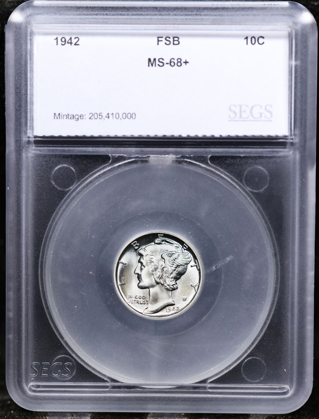 ***Auction Highlight*** 1942-p TOP POP! Mercury Dime 10c Graded ms68+ FSB By SEGS. A Corey's Pick, Bid to Win, Don't let it get Away, you might not find its equal Coin. I give this coin my highest recommendation