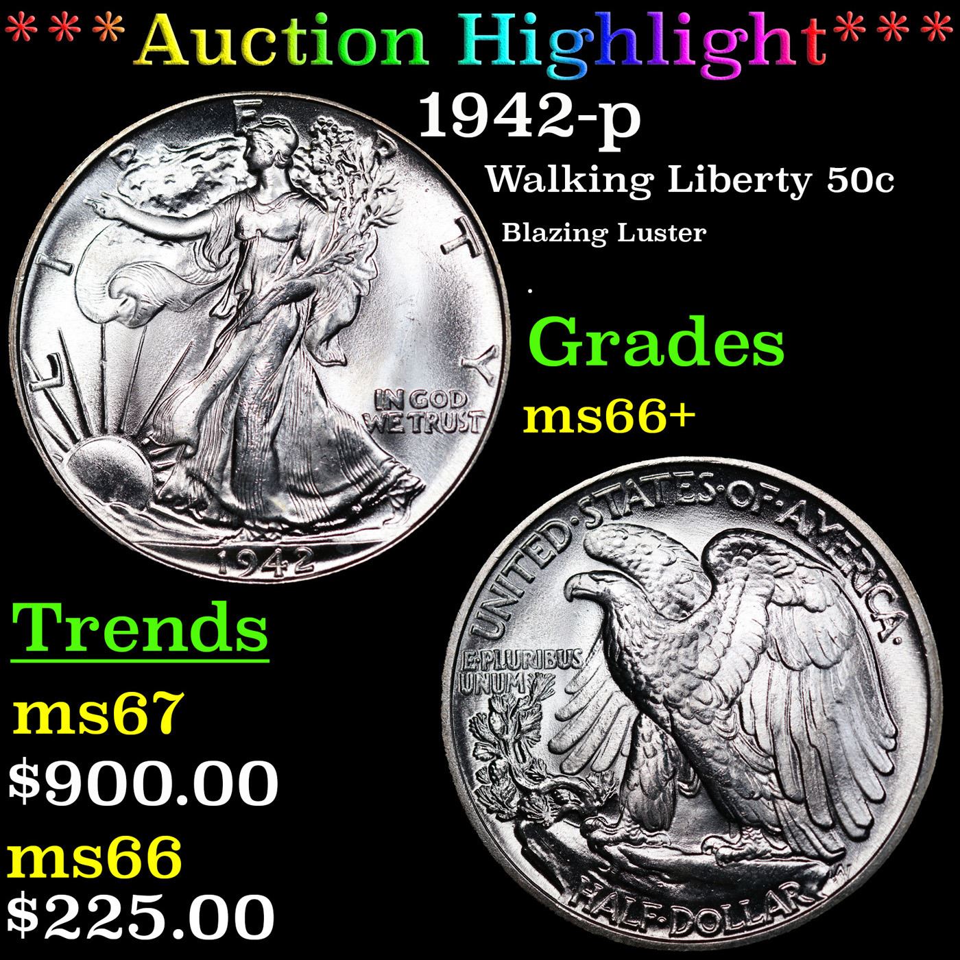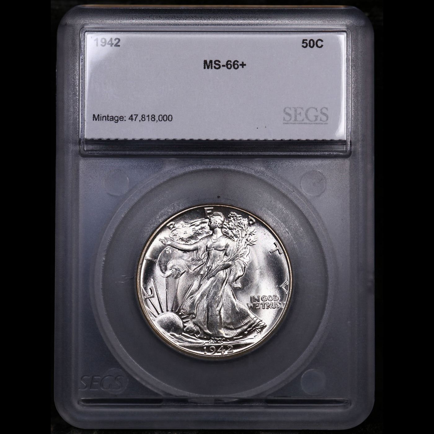 ***Auction Highlight*** 1942-p Walking Liberty Half Dollar 50c Graded ms66+ By SEGS. A Corey's Pick, Bid to Win, Don't let it get Away Coin