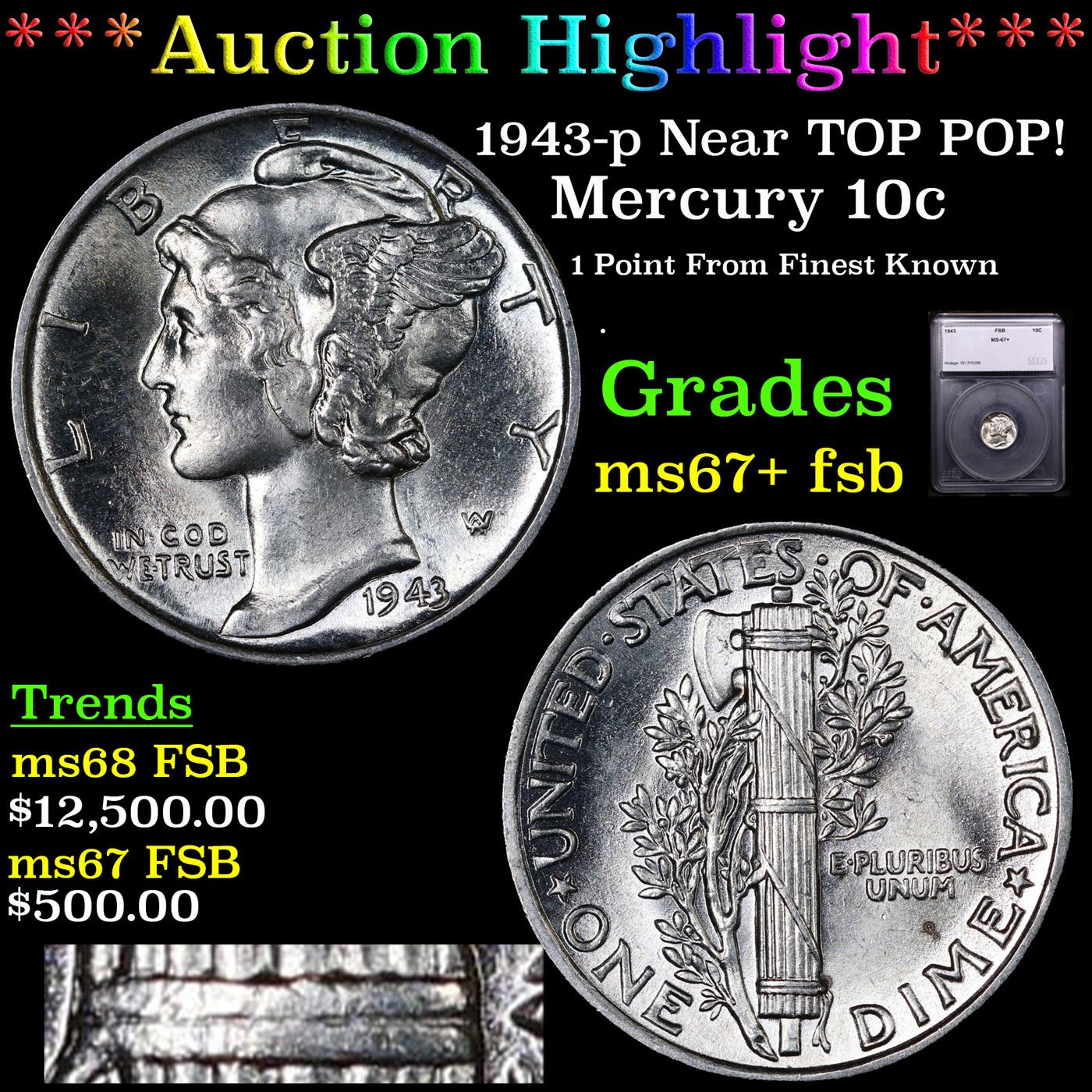 ***Auction Highlight*** 1943-p Near TOP POP! Mercury Dime 10c Graded ms67+ fsb BY SEGS. A Corey's Pick, Bid to Win, Don't let it get Away, you might not find its equal Coin. I give this coin my highest recommendation