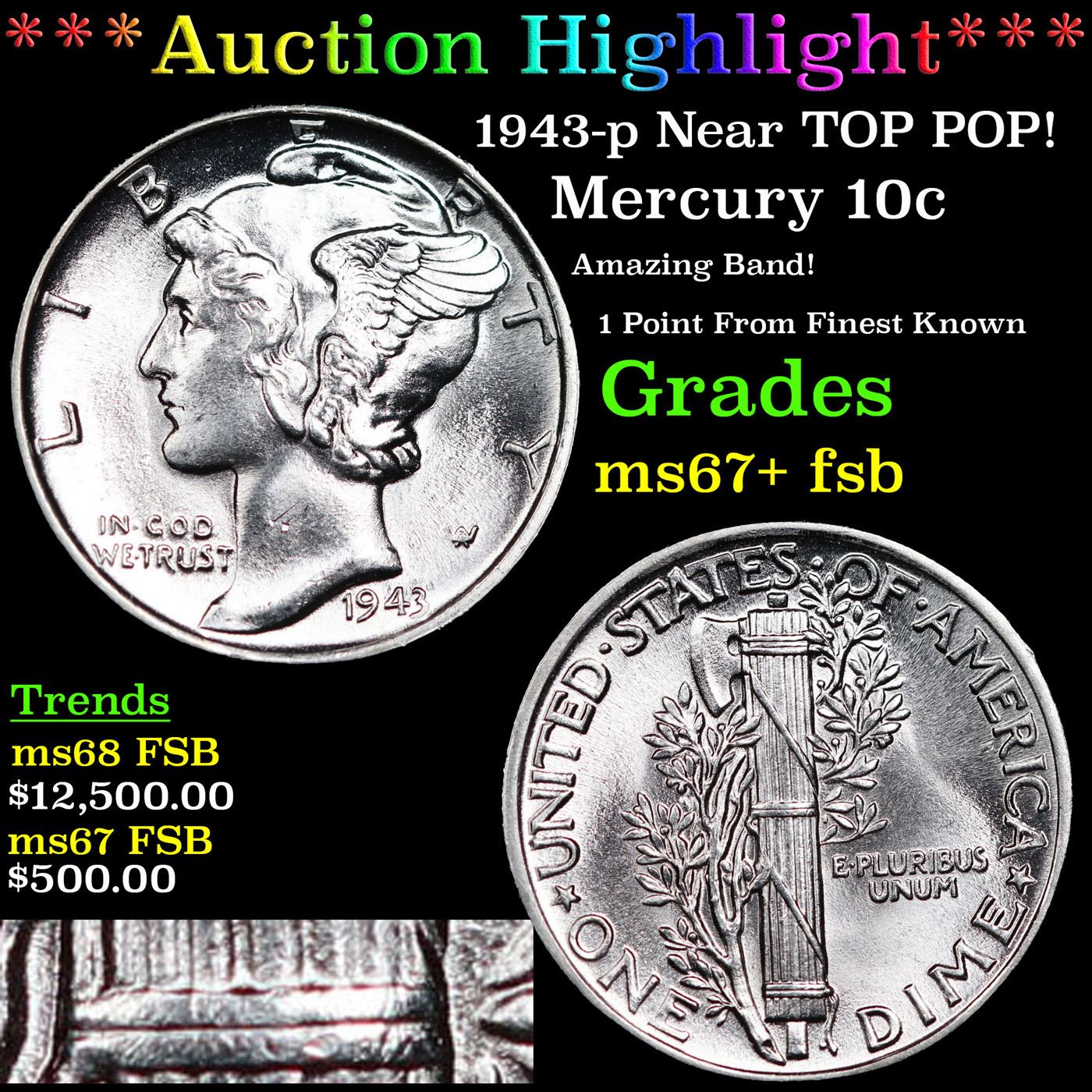 ***Auction Highlight*** 1943-p Near TOP POP! Mercury Dime 10c Graded ms67+ fsb BY SEGS. A Corey's Pick, Bid to Win, Don't let it get Away, you might not find its equal Coin. I give this coin my highest recommendation