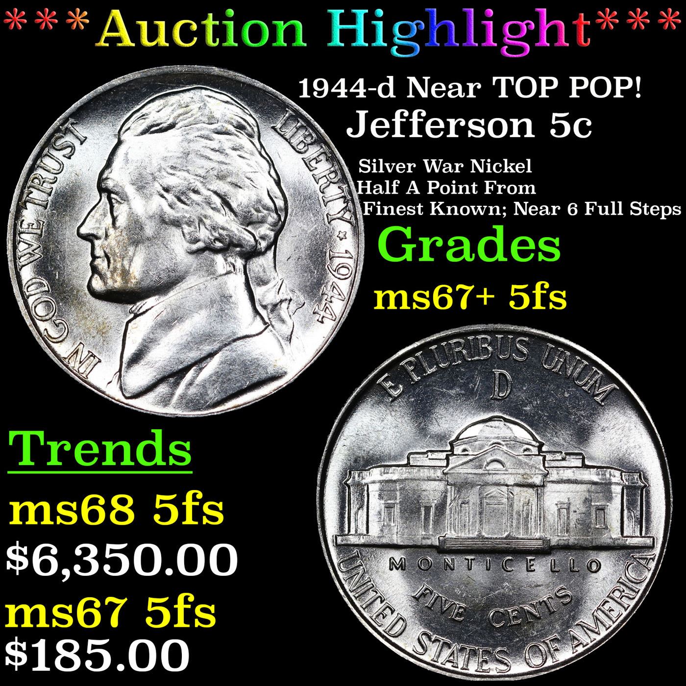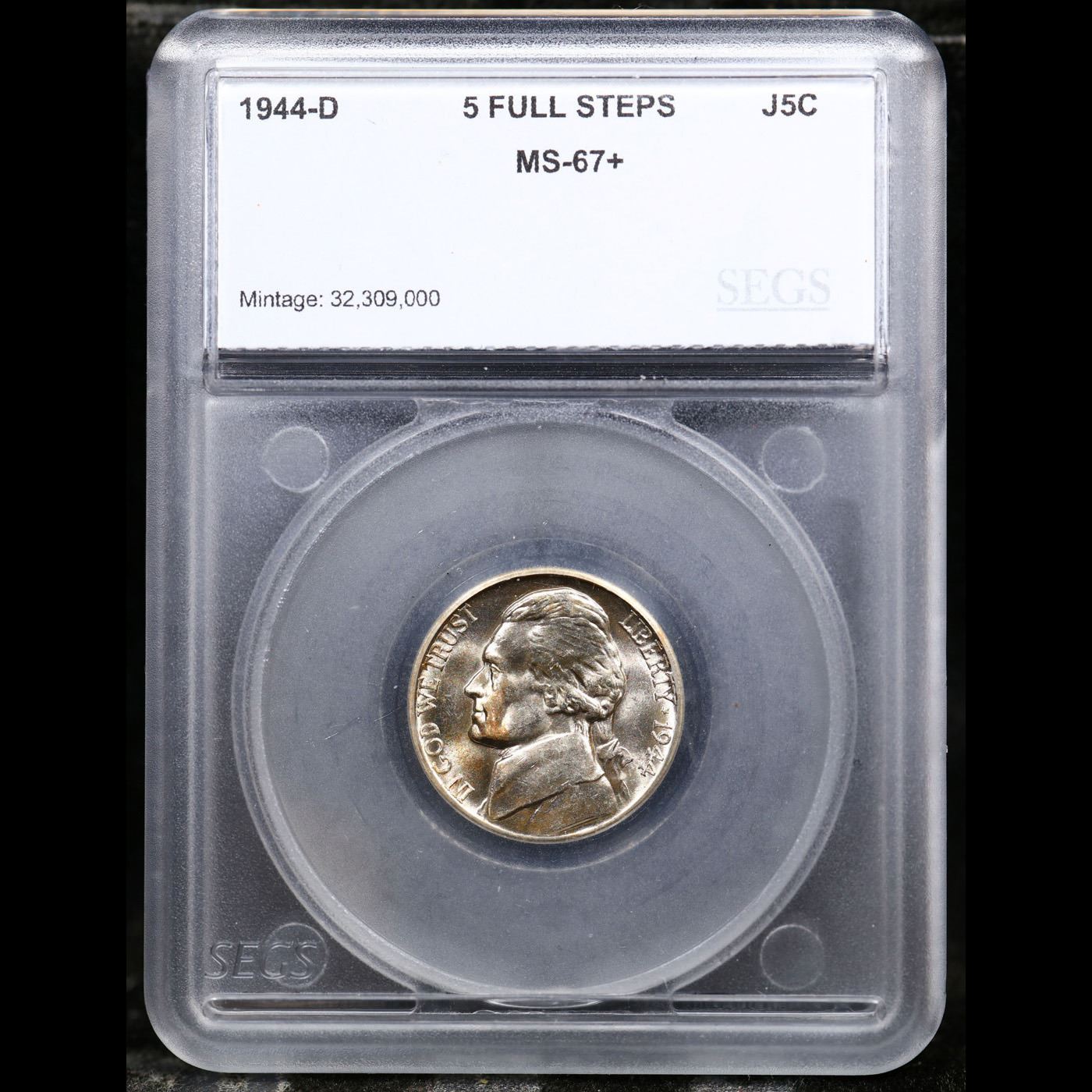 ***Auction Highlight*** 1944-d Jefferson Nickel Near TOP POP! 5c Graded ms67+ 5fs BY SEGS (fc)