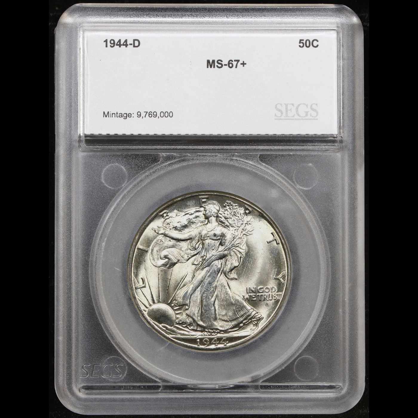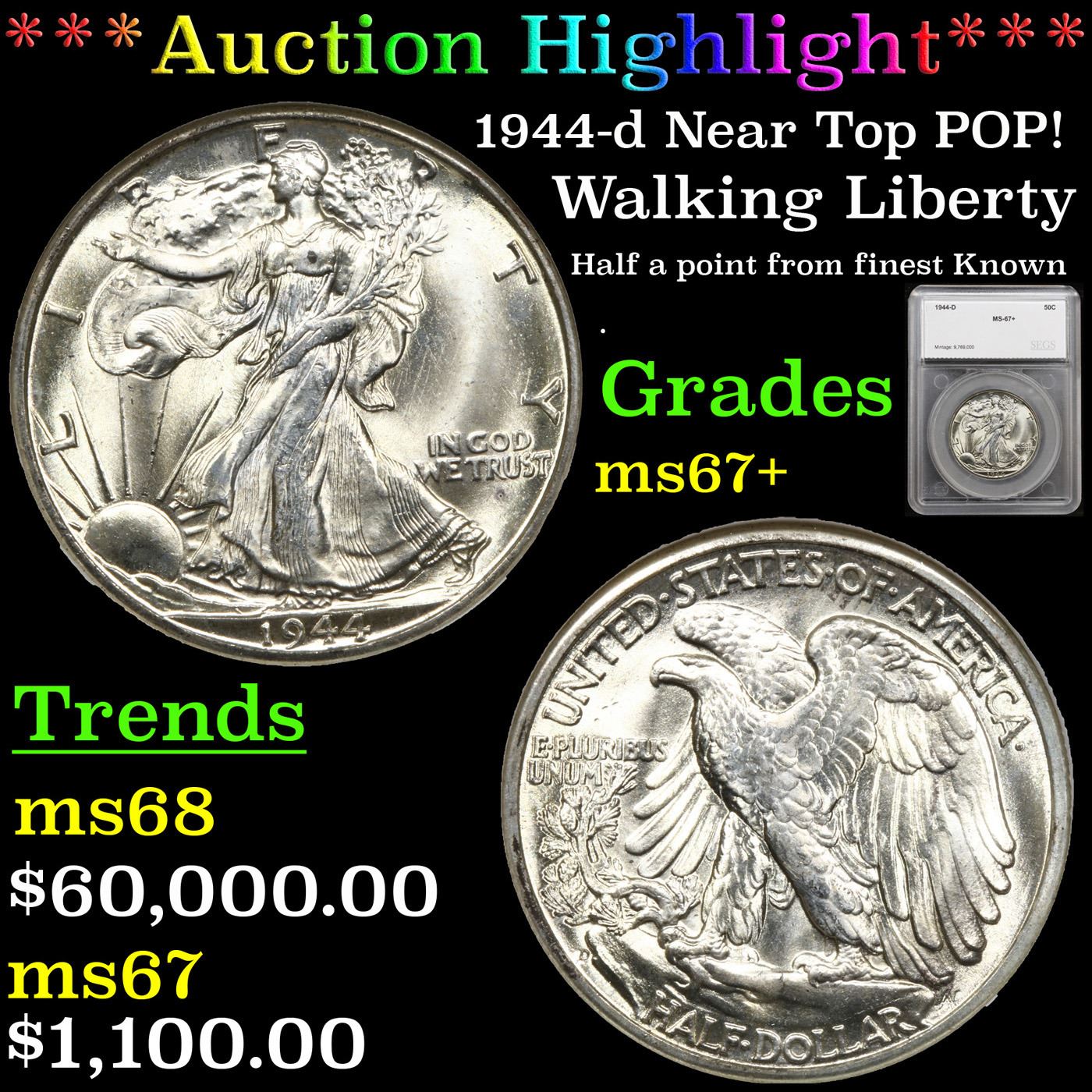 ***Auction Highlight*** 1944-d Near Top POP! Walking Liberty Half Dollar 50c Graded ms67+ By SEGS. A Corey's Pick, Bid to Win, Don't let it get Away, you might not find its equal Coin. I give this coin my highest recommendation