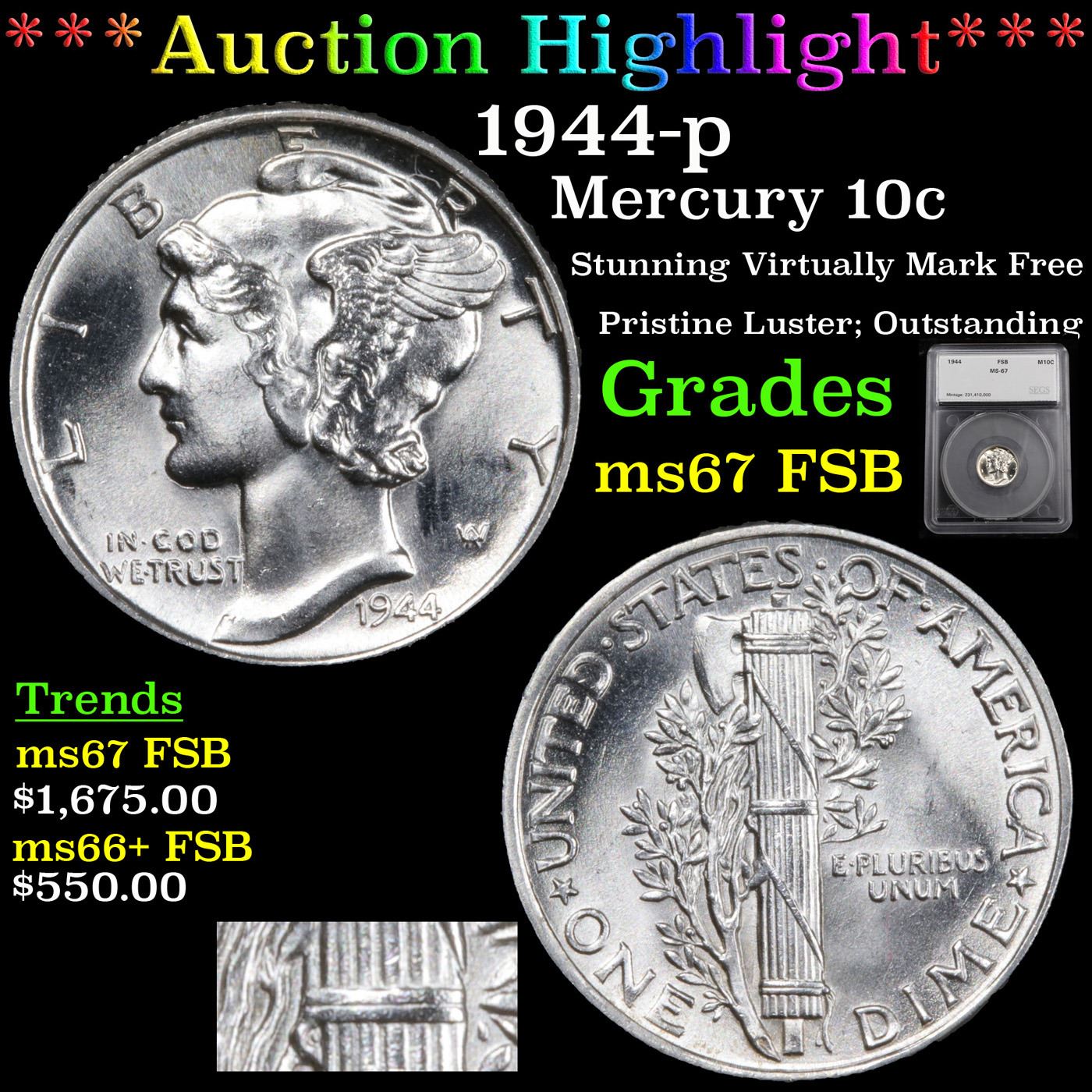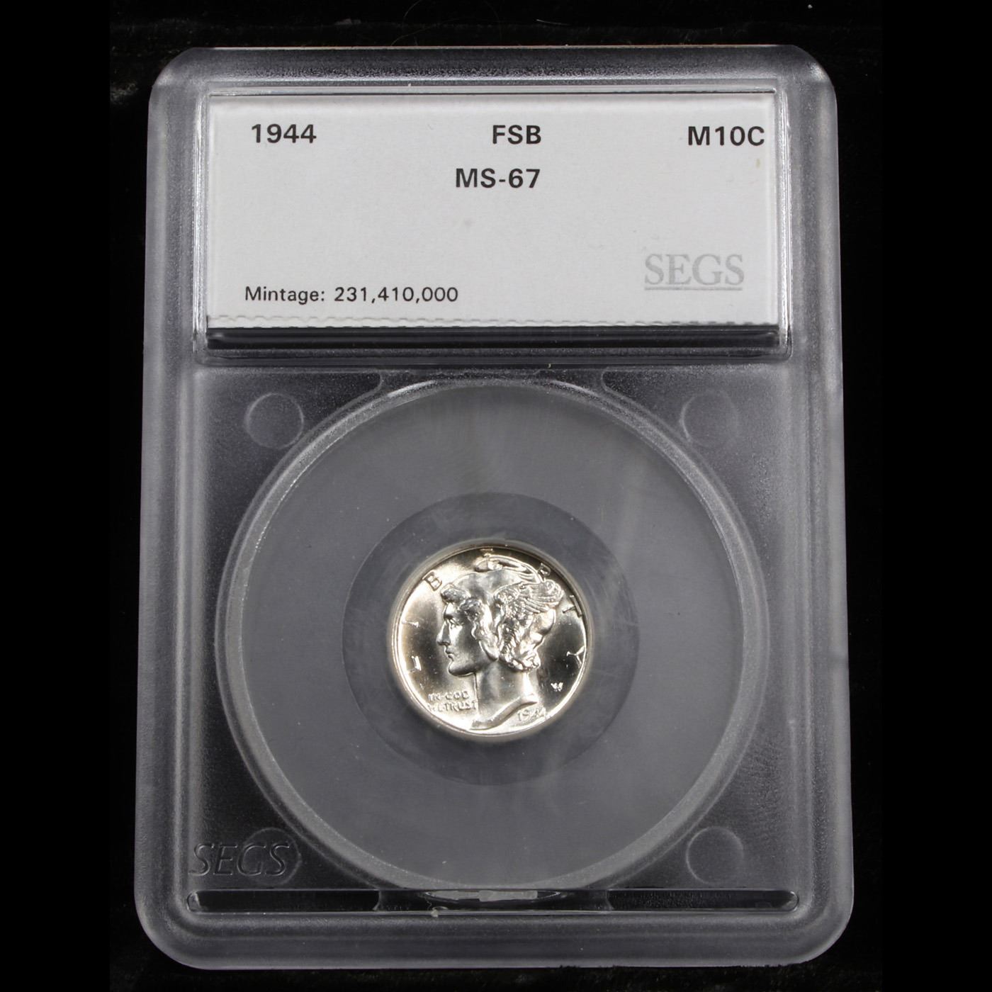 ***Auction Highlight*** 1944-p Mercury Dime 10c Graded ms67 FSB By SEGS. A Corey's Pick, Bid to Win Coin