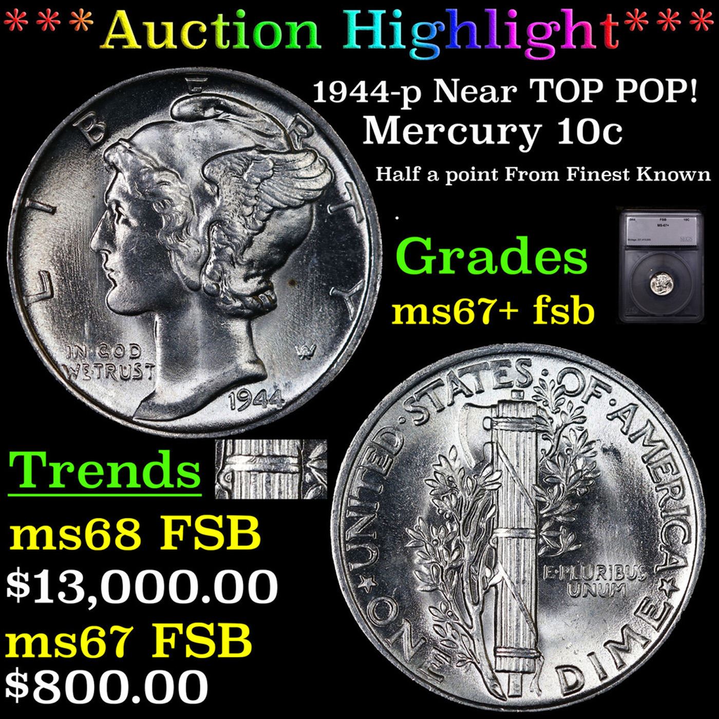 ***Auction Highlight*** 1944-p Near TOP POP! Mercury Dime 10c Graded ms67+ fsb BY SEGS. A Key Date's Pick, Bid to Win, Don't let it get Away, you might not find its equal Coin. I give this coin my highest recommendation