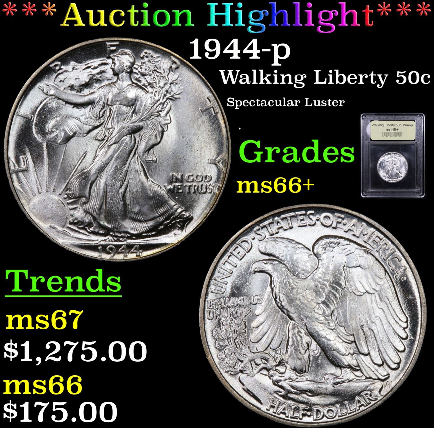 ***Auction Highlight*** 1944-p Walking Liberty Half Dollar 50c Graded GEM++ Unc By USCG (fc)