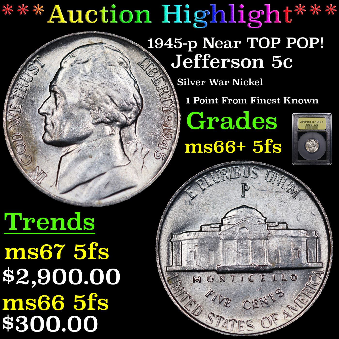 ***Auction Highlight*** 1945-p Jefferson Nickel Near TOP POP! 5c Graded GEM++ 5fs BY USCG (fc)