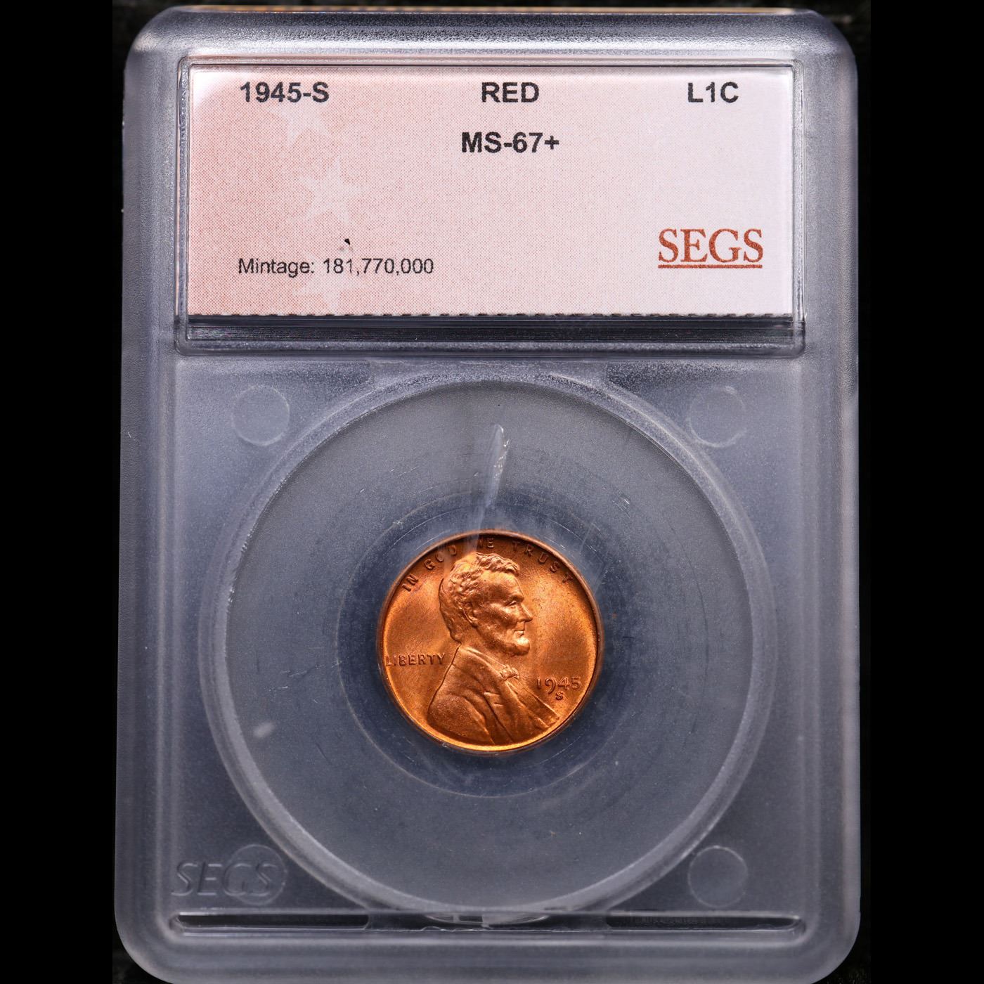 ***Auction Highlight*** 1945-s Lincoln Cent Near TOP POP! 1c Graded ms67+ rd By SEGS (fc)