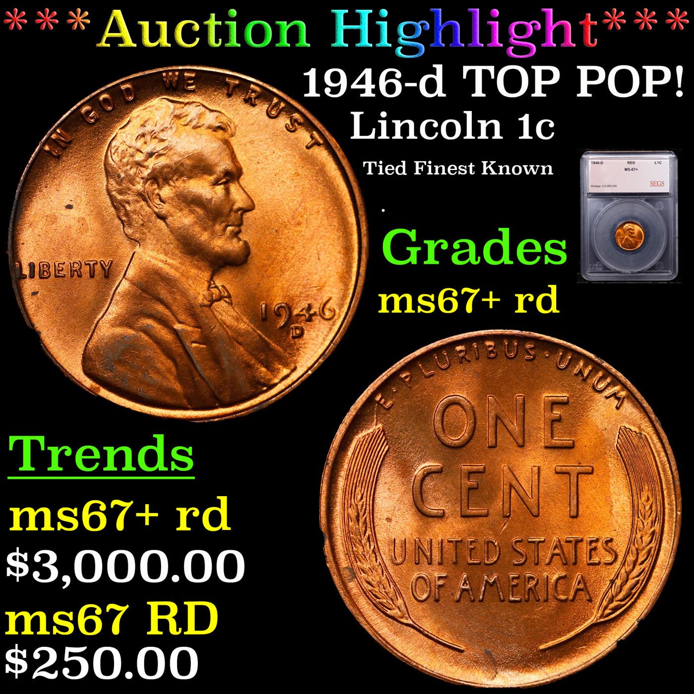 ***Auction Highlight*** 1946-d TOP POP! Lincoln Cent 1c Graded ms67+ rd BY SEGS. A Key Date's Pick, Bid to Win, Don't let it get Away, you might not find its equal Coin