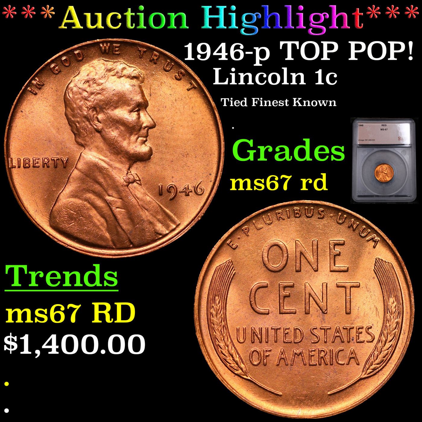 ***Auction Highlight*** 1946-p TOP POP! Lincoln Cent 1c Graded ms67 rd BY SEGS.