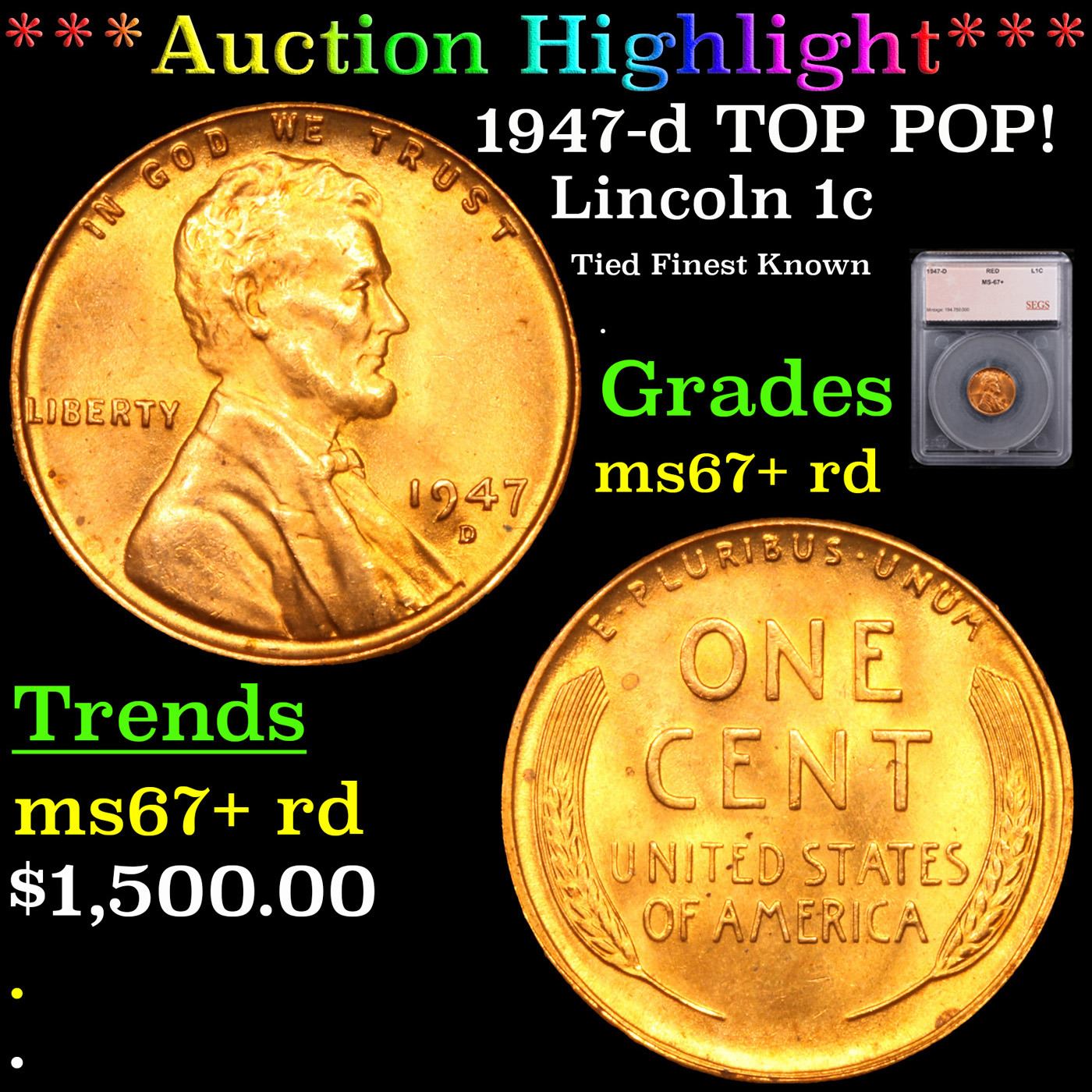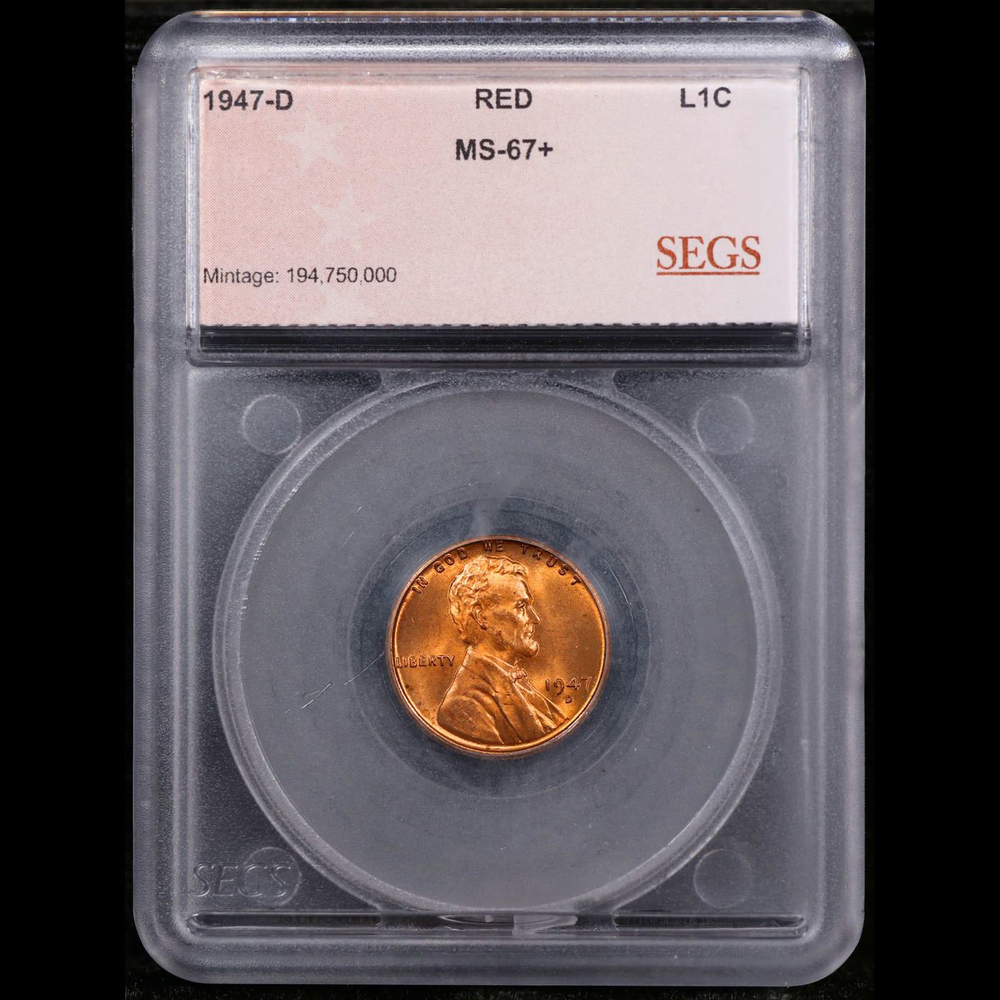***Auction Highlight*** 1947-d TOP POP! Lincoln Cent 1c Graded ms67+ rd BY SEGS. A Corey's Pick, Bid to Win, Don't let it get Away Coin