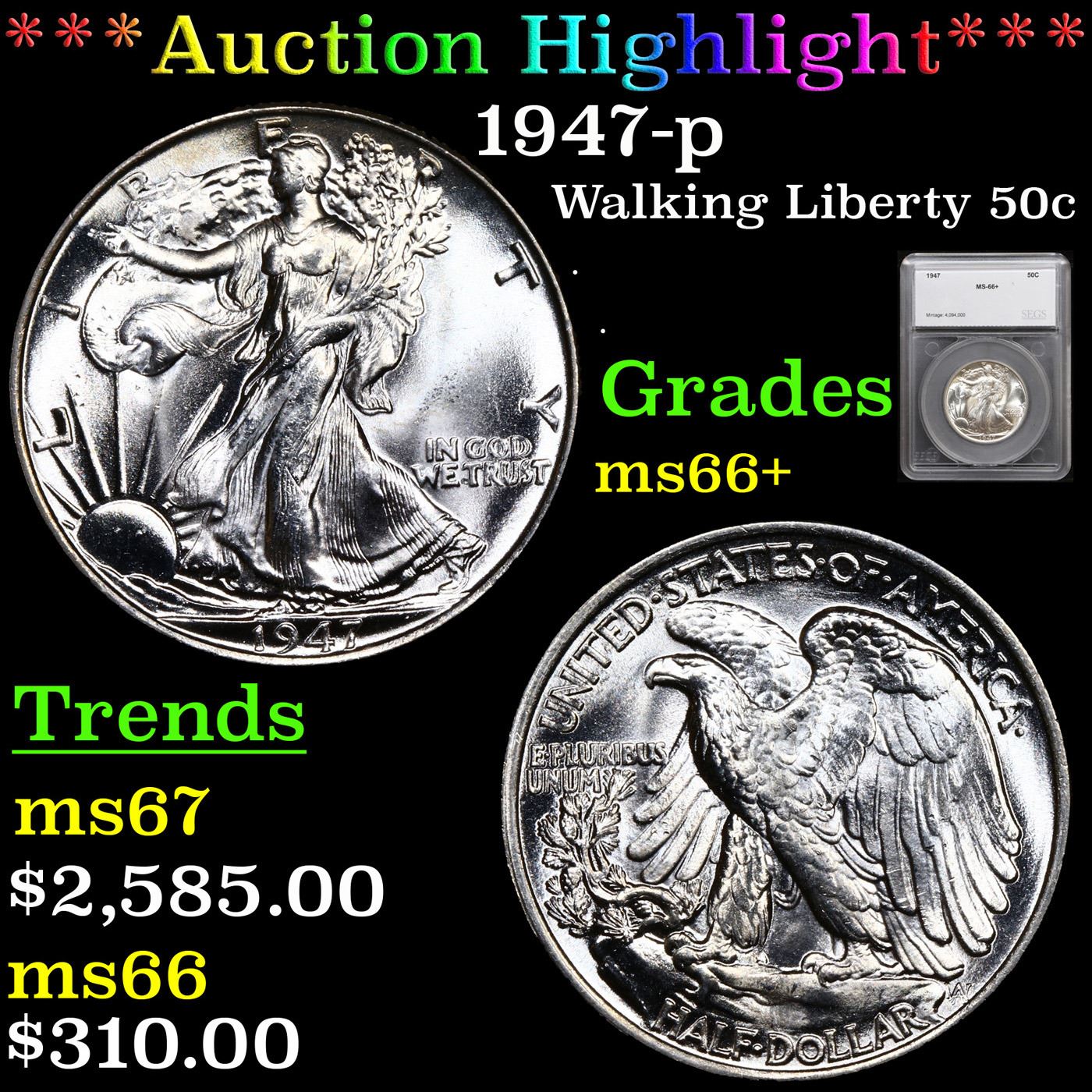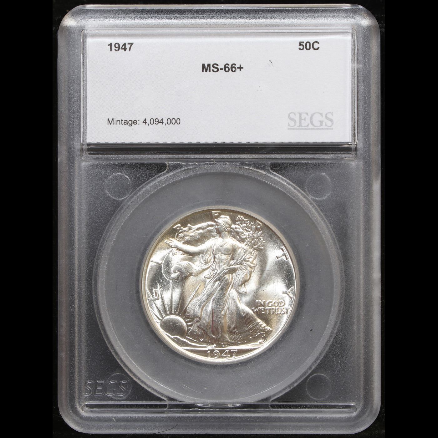 ***Auction Highlight*** 1947-p Walking Liberty Half Dollar 50c Graded ms66+ By SEGS.