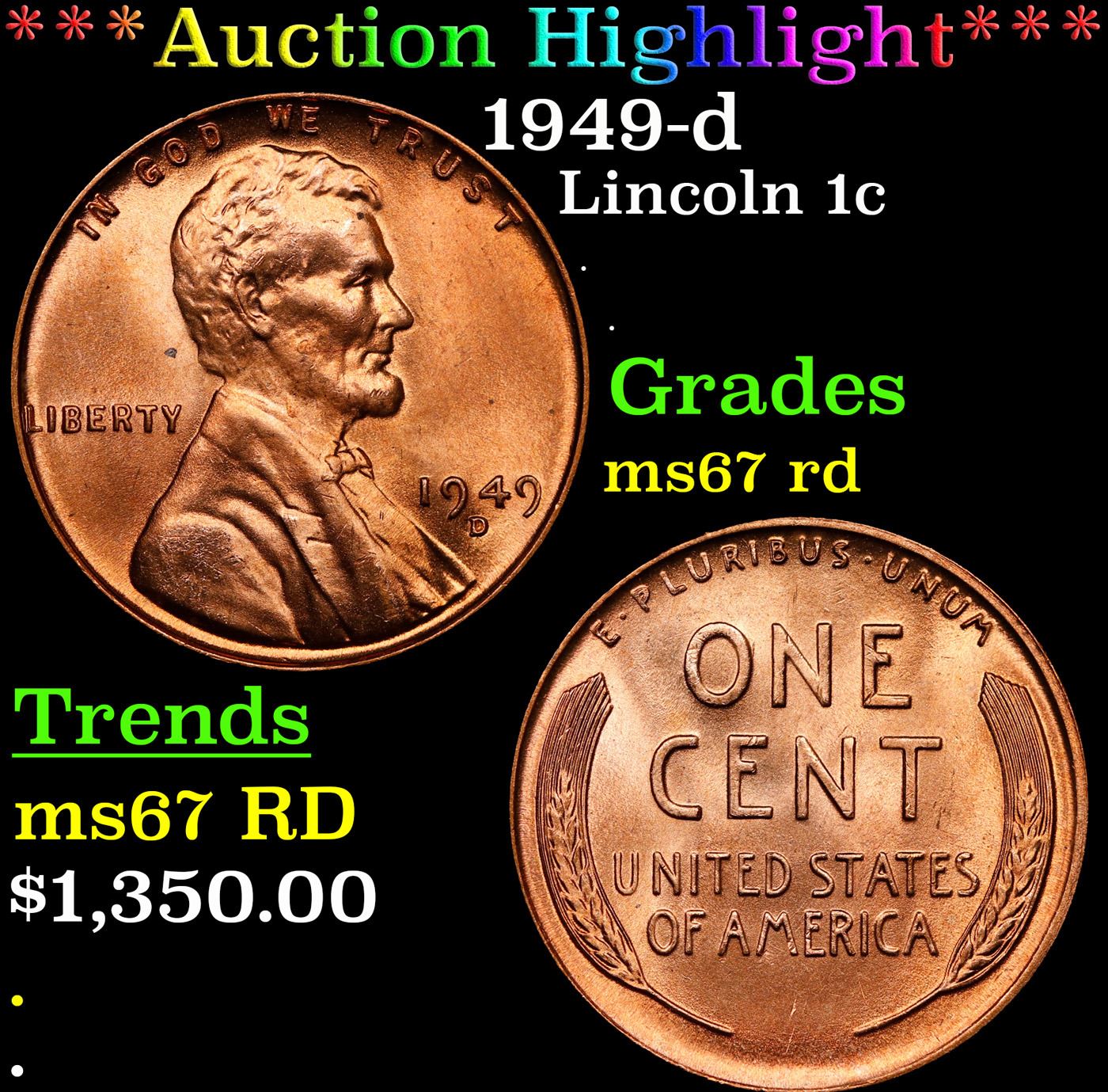 **Auction Highlight*** 1949-d Lincoln Cent 1c Graded GEM++ Unc RD By USCG.