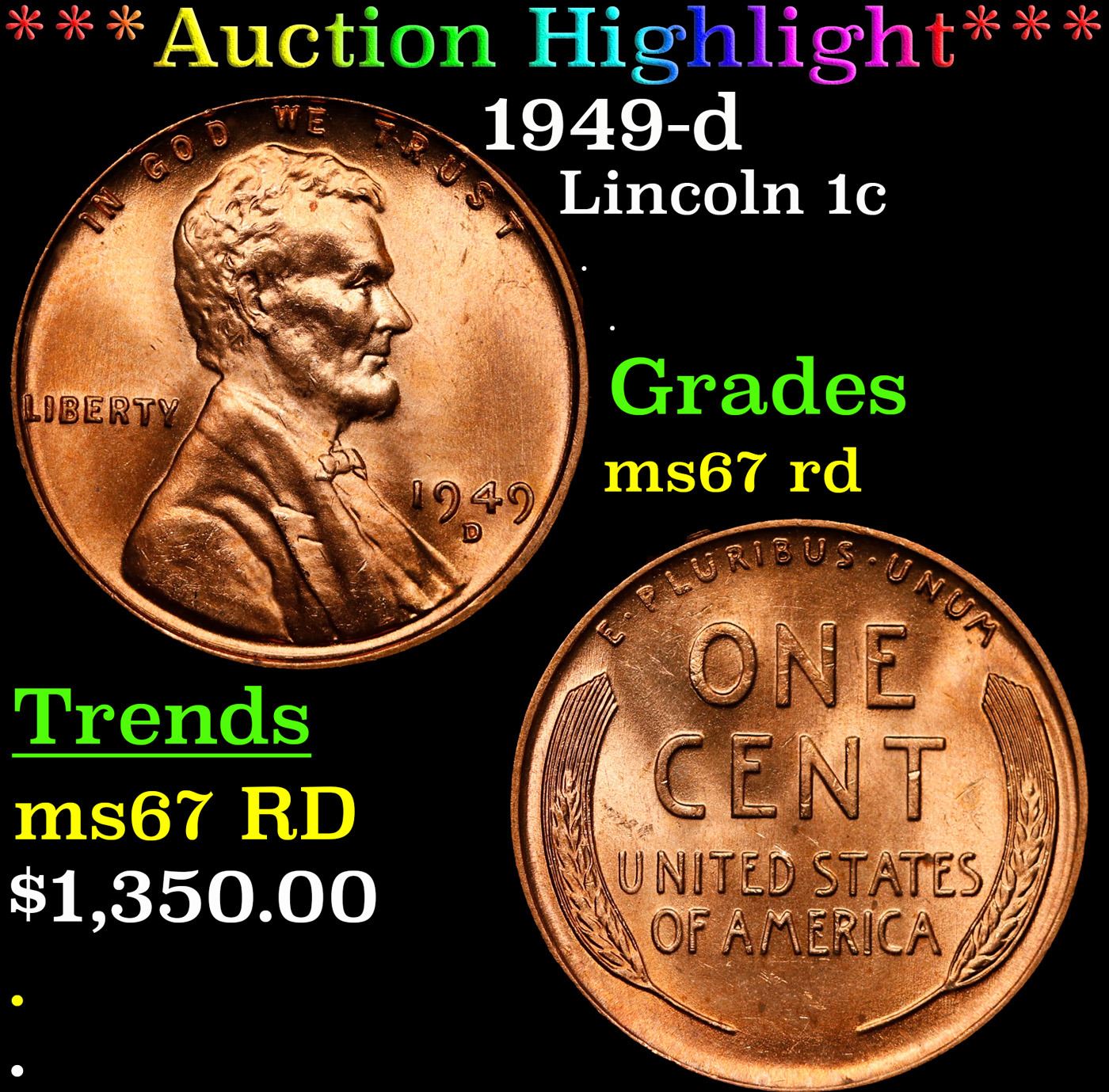 **Auction Highlight*** 1949-d Lincoln Cent 1c Graded GEM++ Unc RD By USCG.
