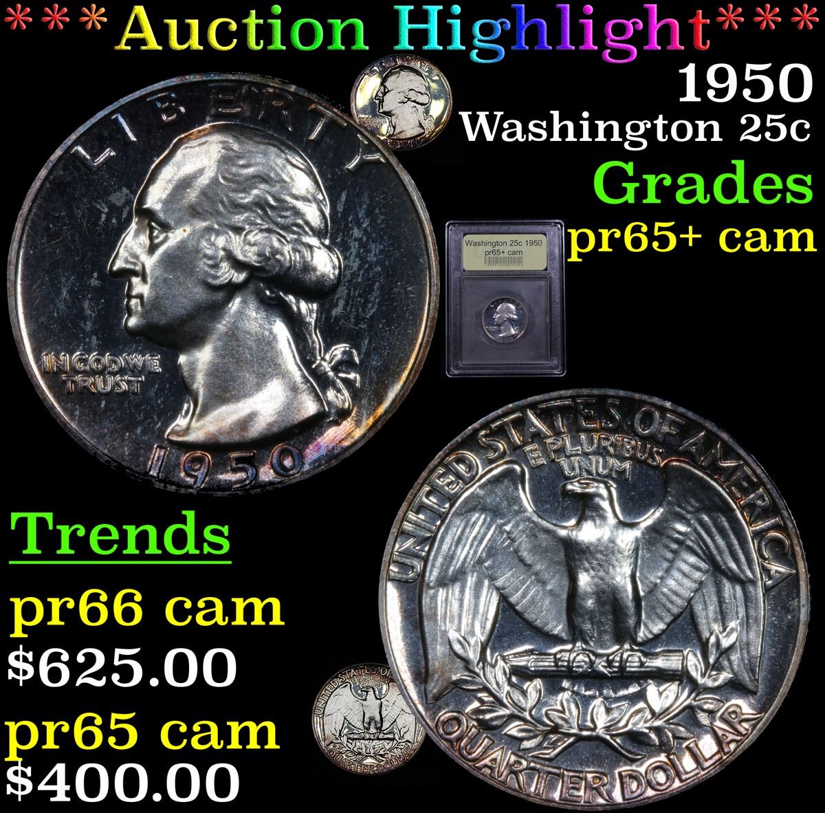 ***Auction Highlight*** 1950 Washington Quarter 25c Graded GEM+ Proof Cameo BY USCG. A Corey's Pick, Bid to Win Coin