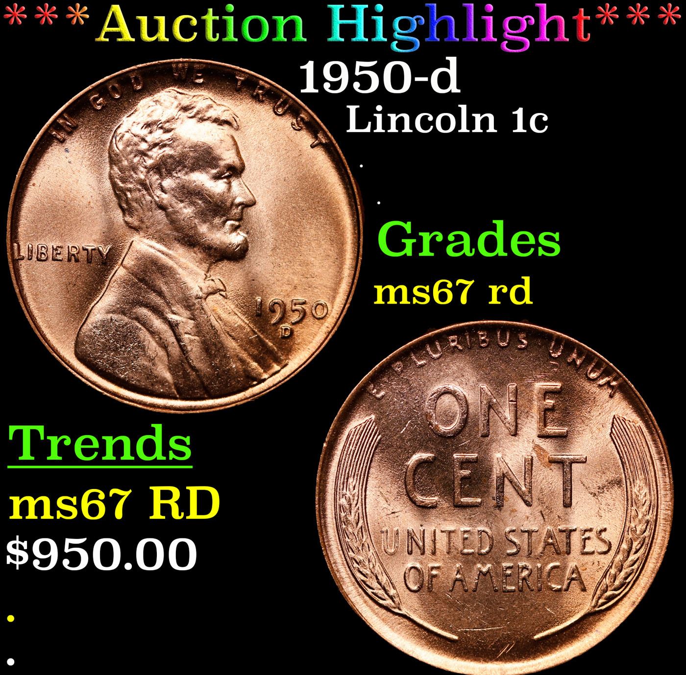 ***Auction Highlight*** 1950-d Lincoln Cent 1c Graded GEM++ Unc RD By USCG.
