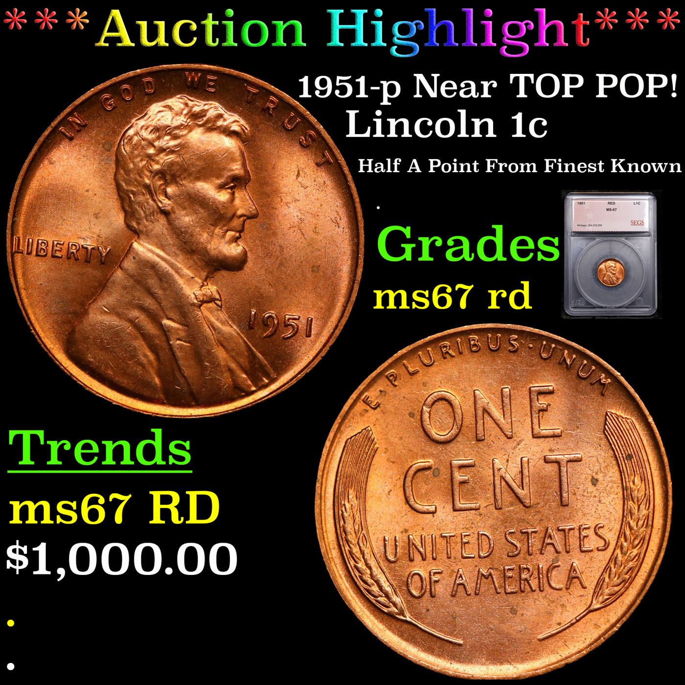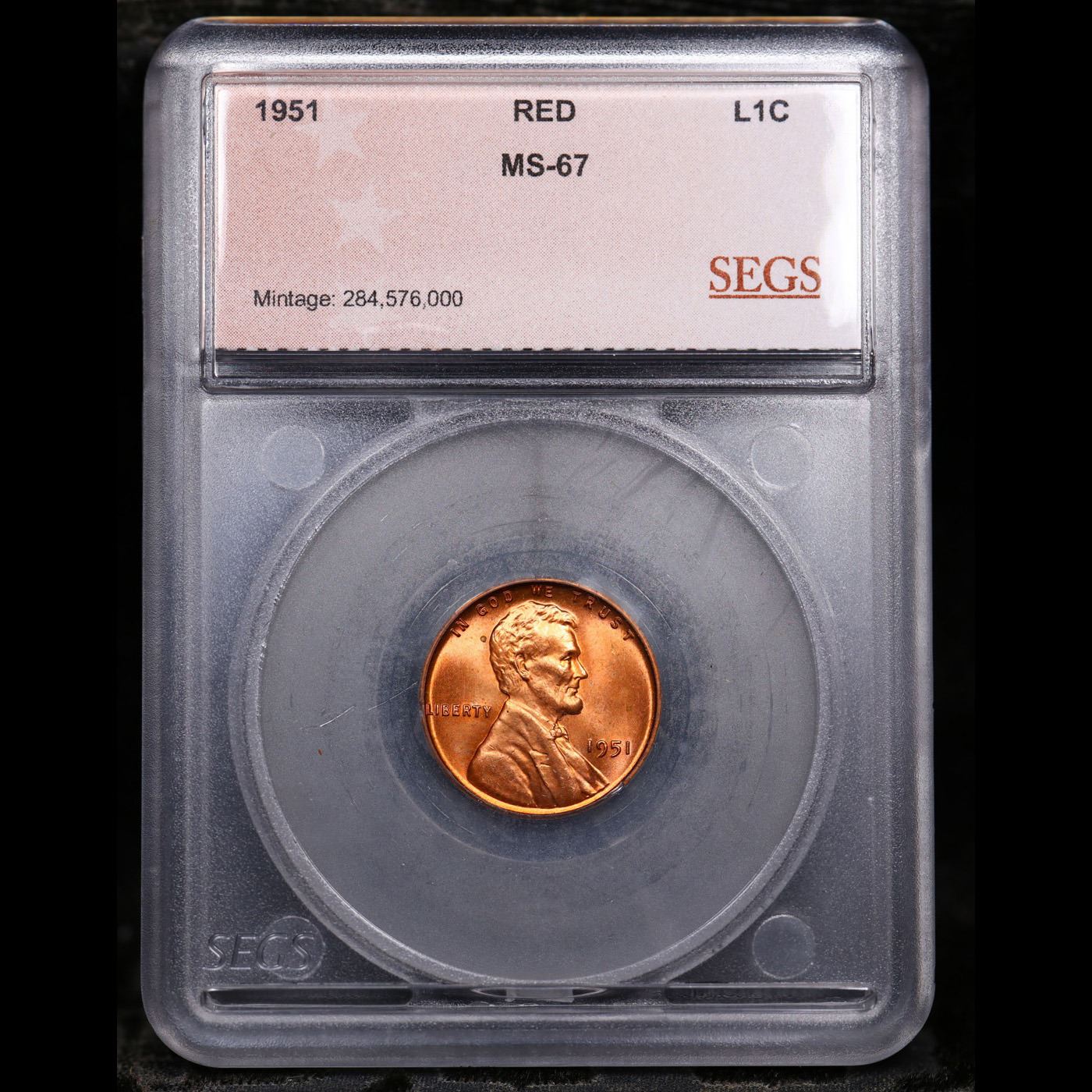 ***Auction Highlight*** 1951-p Near TOP POP! Lincoln Cent 1c Graded ms67 rd BY SEGS. A Corey's Pick, Bid to Win, Don't let it get Away, you might not find its equal Coin. I give this coin my highest recommendation