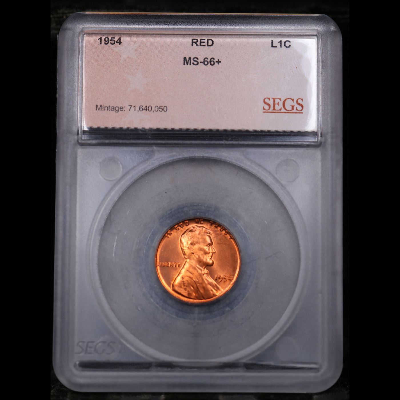 ***Auction Highlight*** 1954-p Near TOP POP! Lincoln Cent 1c Graded ms66+ rd BY SEGS. A Corey's Pick, Bid to Win Coin