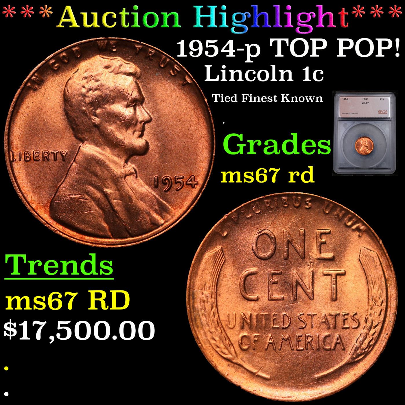 ***Auction Highlight*** 1954-p TOP POP! Lincoln Cent 1c Graded ms67 rd BY SEGS. A Corey's Pick, Bid to Win, Don't let it get Away, you might not find its equal Coin