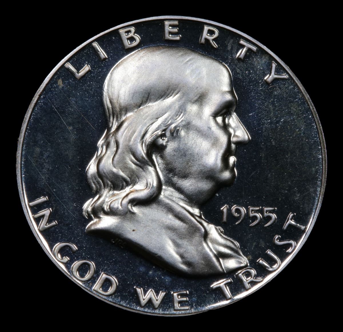 ***Auction Highlight*** 1955 Franklin Half Dollar 50c Graded GEM++ Proof Deep Cameo By USCG (fc)