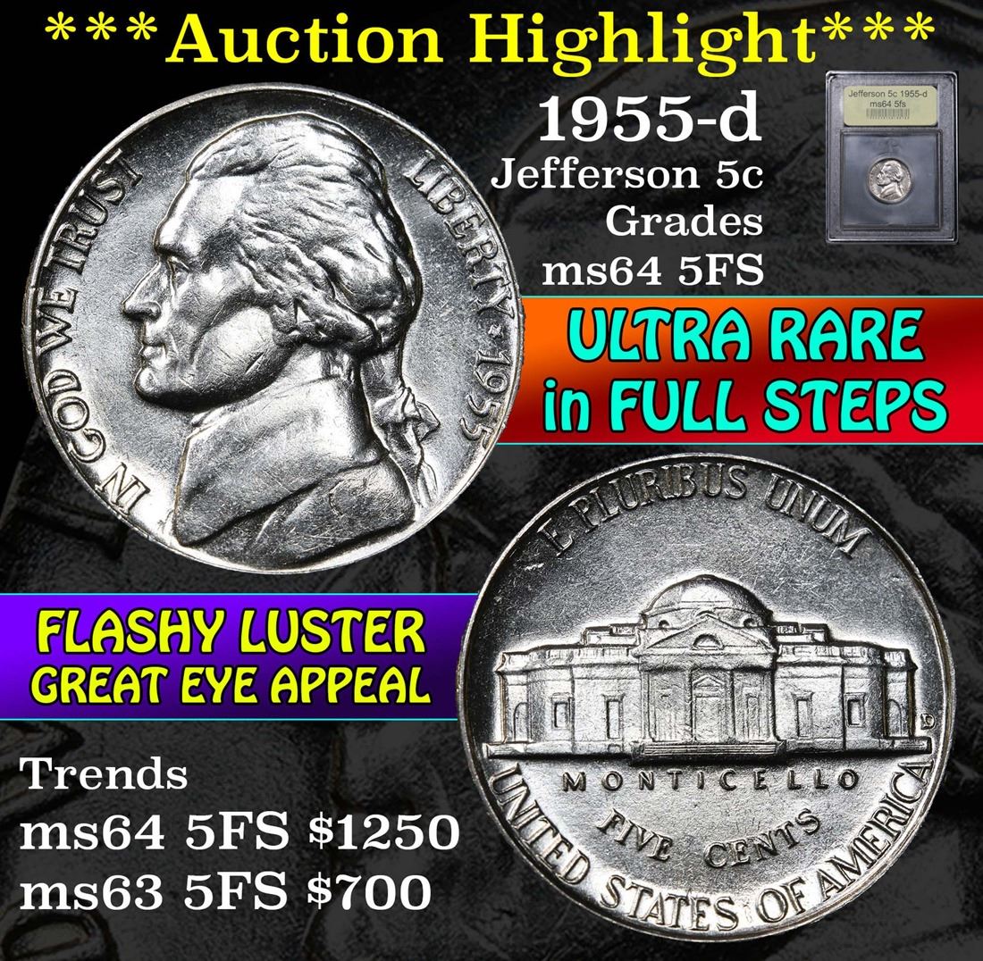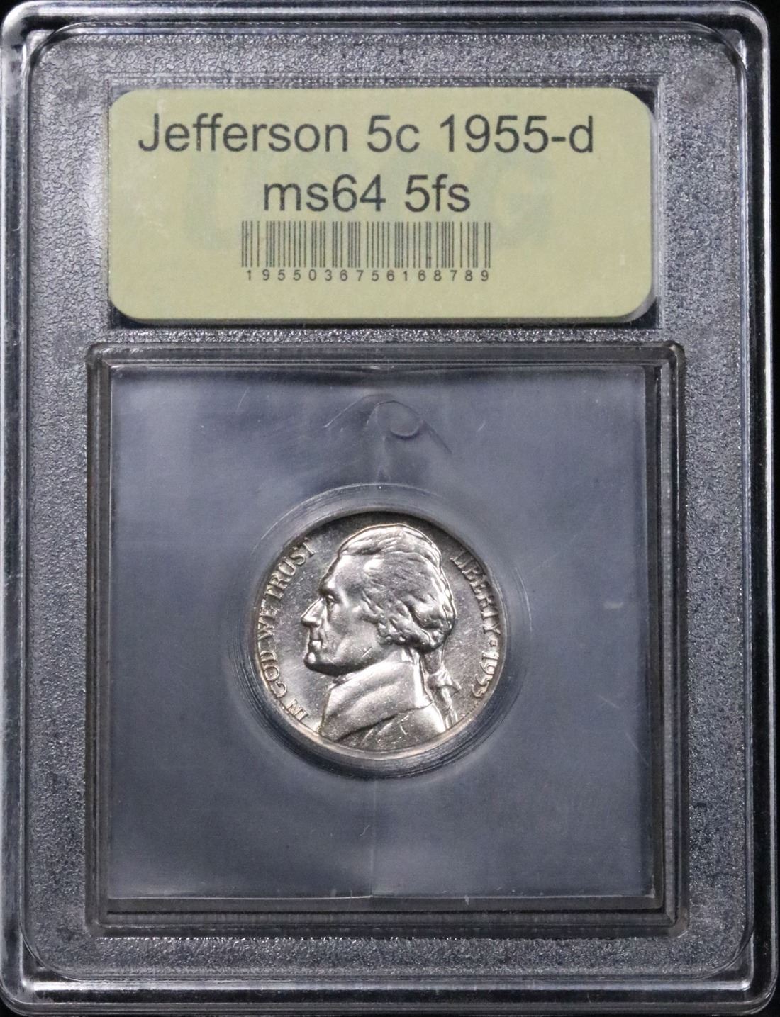 ***Auction Highlight*** 1955-d Jefferson Nickel 5c Graded Choice Unc 5fs By USCG.