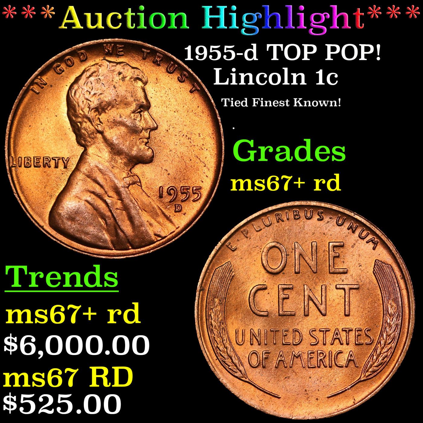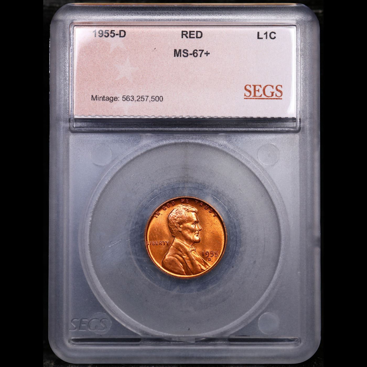 ***Auction Highlight*** 1955-d TOP POP! Lincoln Cent 1c Graded ms67+ rd By SEGS. A Corey's Pick, Bid to Win, Don't let it get Away, you might not find its equal Coin