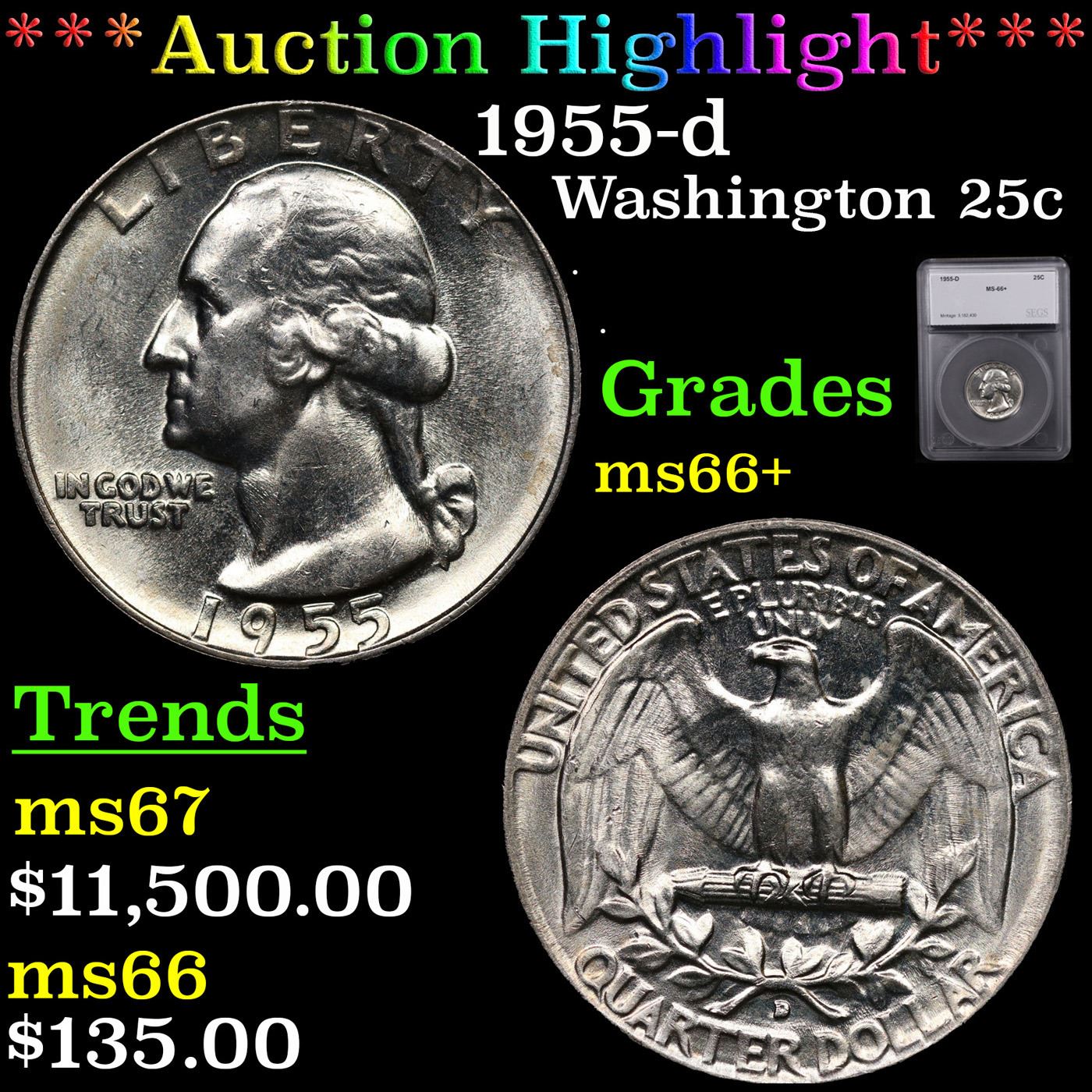 ***Auction Highlight*** 1955-d Washington Quarter 25c Graded ms66+ BY SEGS.