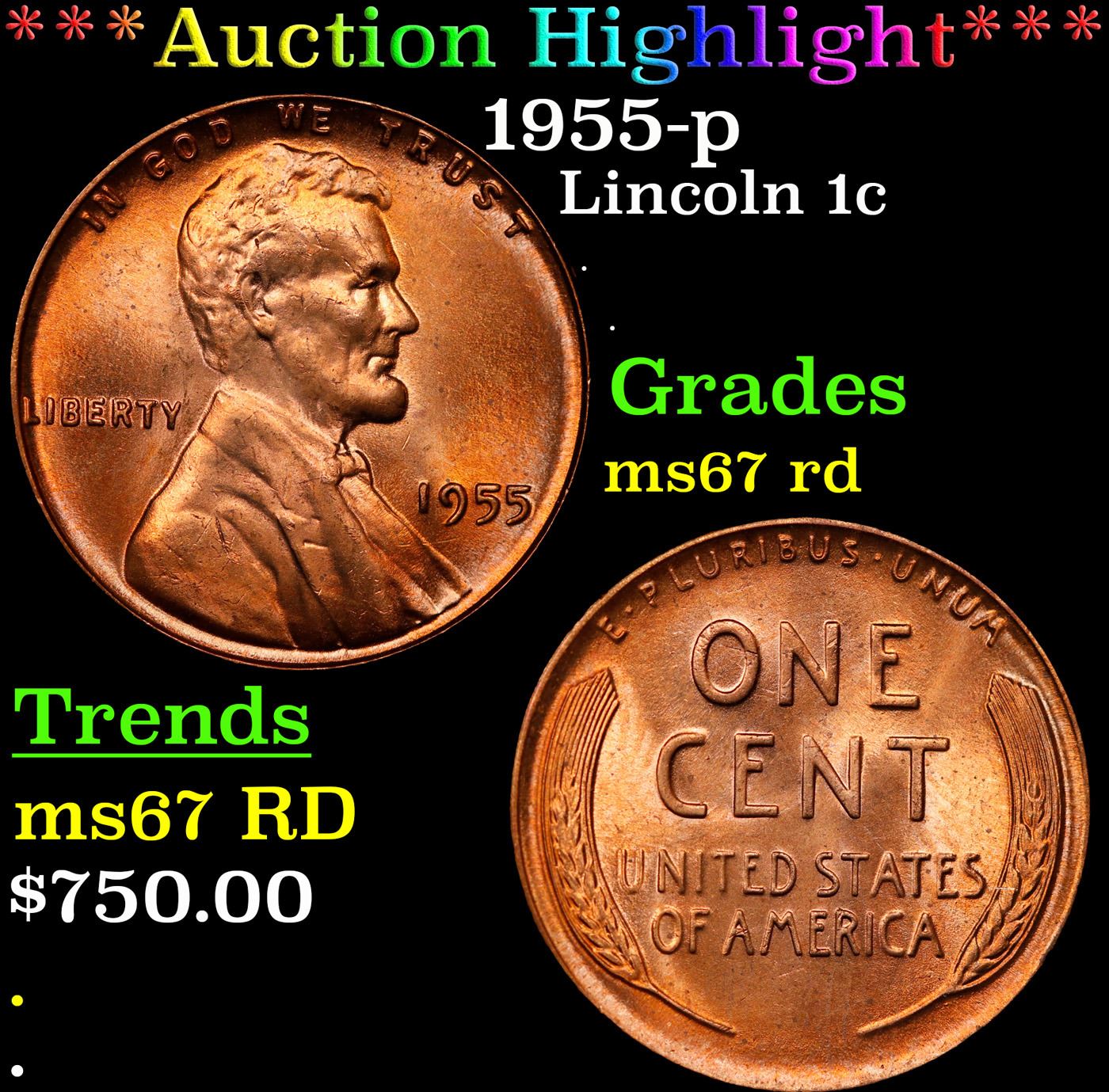 ***Auction Highlight*** 1955-p Lincoln Cent 1c Graded GEM++ Unc RD By USCG.