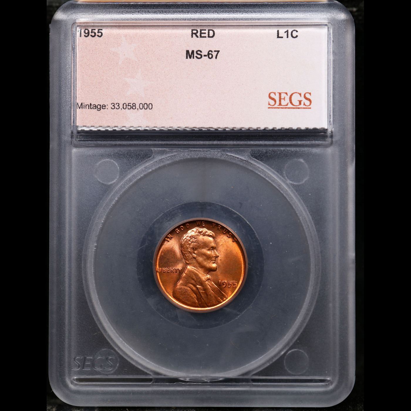 ***Auction Highlight*** 1955-p Near TOP POP! Lincoln Cent 1c Graded ms67 rd By SEGS. A Corey's Pick, Bid to Win Coin