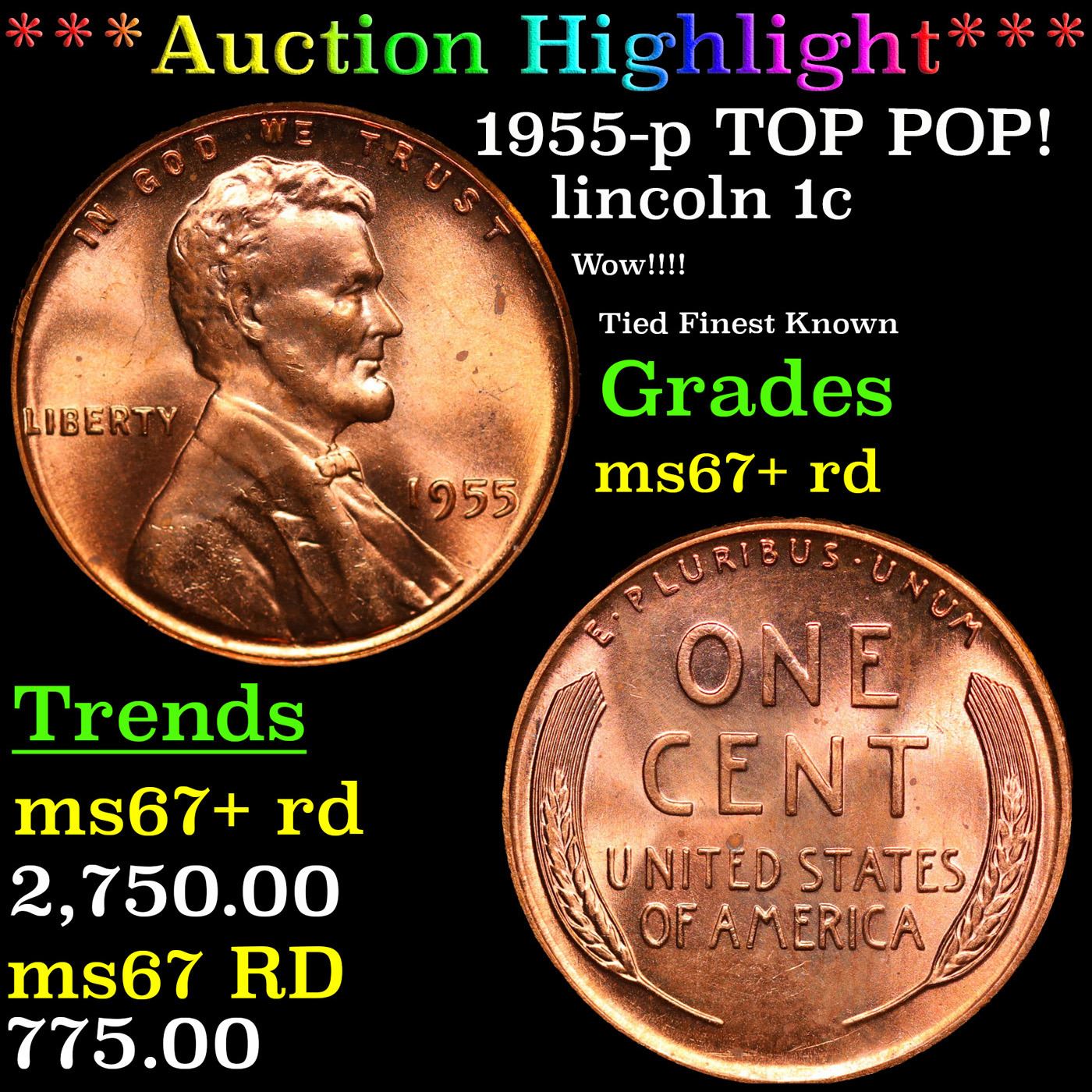 ***Auction Highlight*** 1955-p TOP POP! Lincoln Cent 1c Graded ms67+ rd BY SEGS. A Corey's Pick, Bid to Win, Don't let it get Away, you might not find its equal Coin. I give this coin my highest recommendation