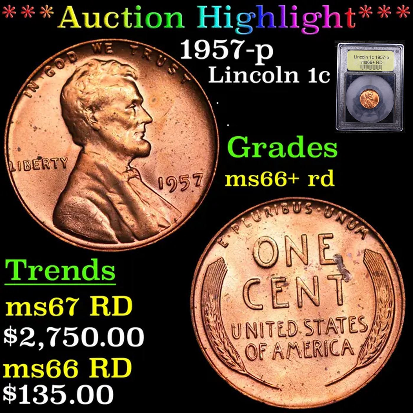 ***Auction Highlight*** 1957-p Lincoln Cent 1c Graded GEM++ RD BY USCG.