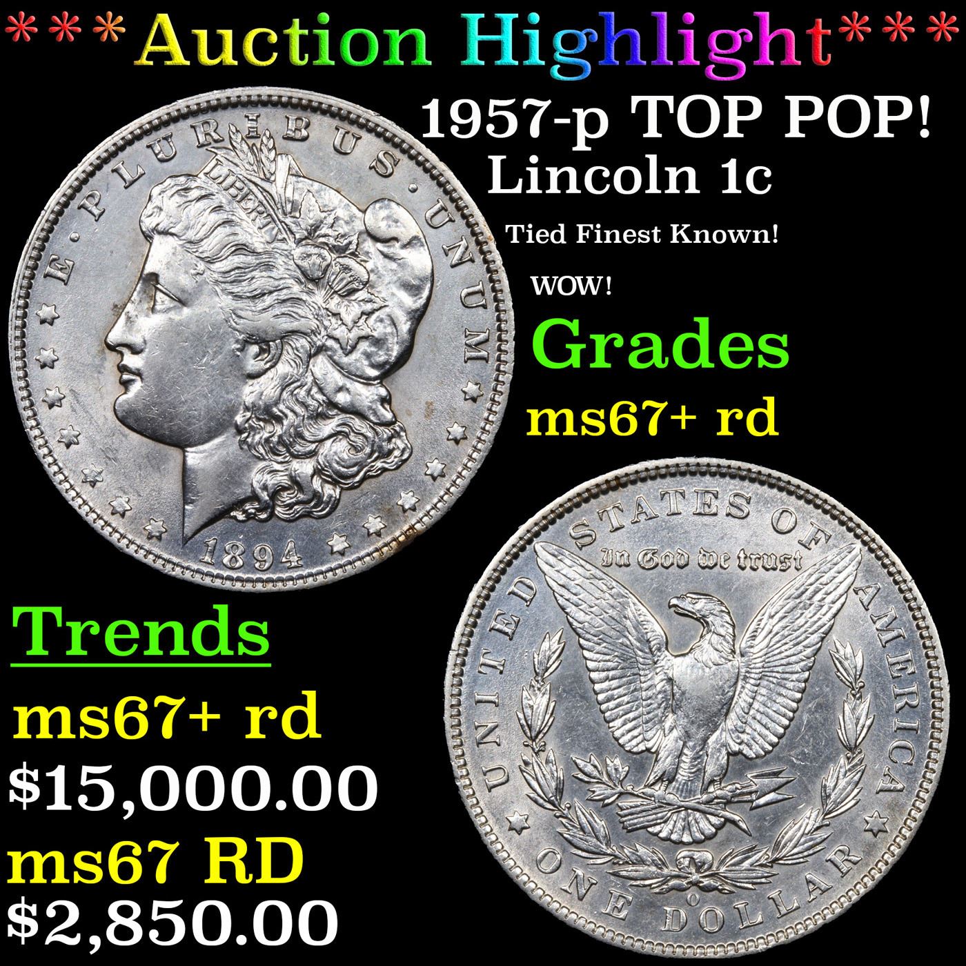 ***Auction Highlight*** 1957-p TOP POP! Lincoln Cent 1c Graded ms67+ rd By SEGS. A Corey's Pick, Bid to Win, Don't let it get Away, you might not find its equal Coin. I give this coin my highest recommendation