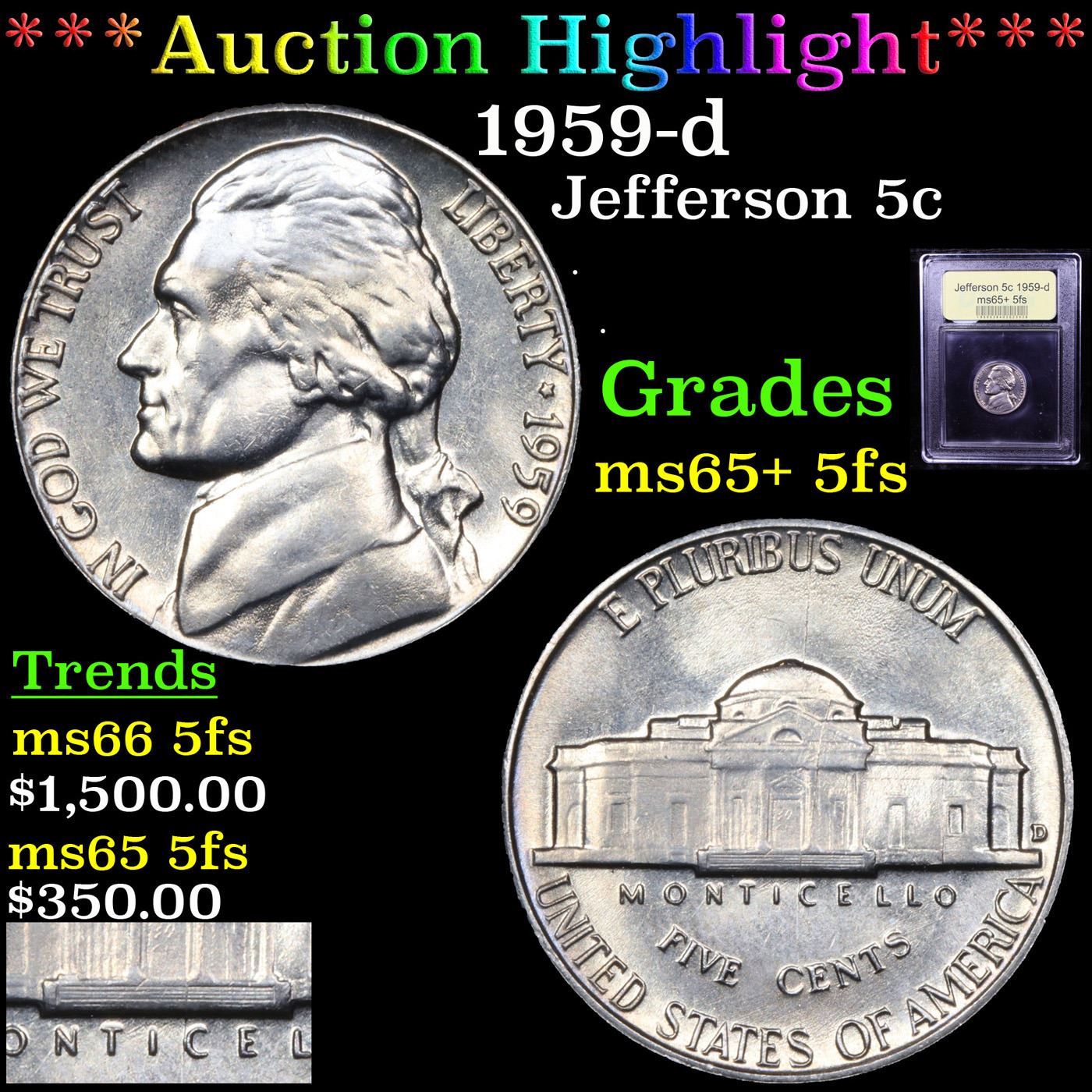 ***Auction Highlight*** 1959-d Jefferson Nickel 5c Graded GEM+ 5fs By USCG.