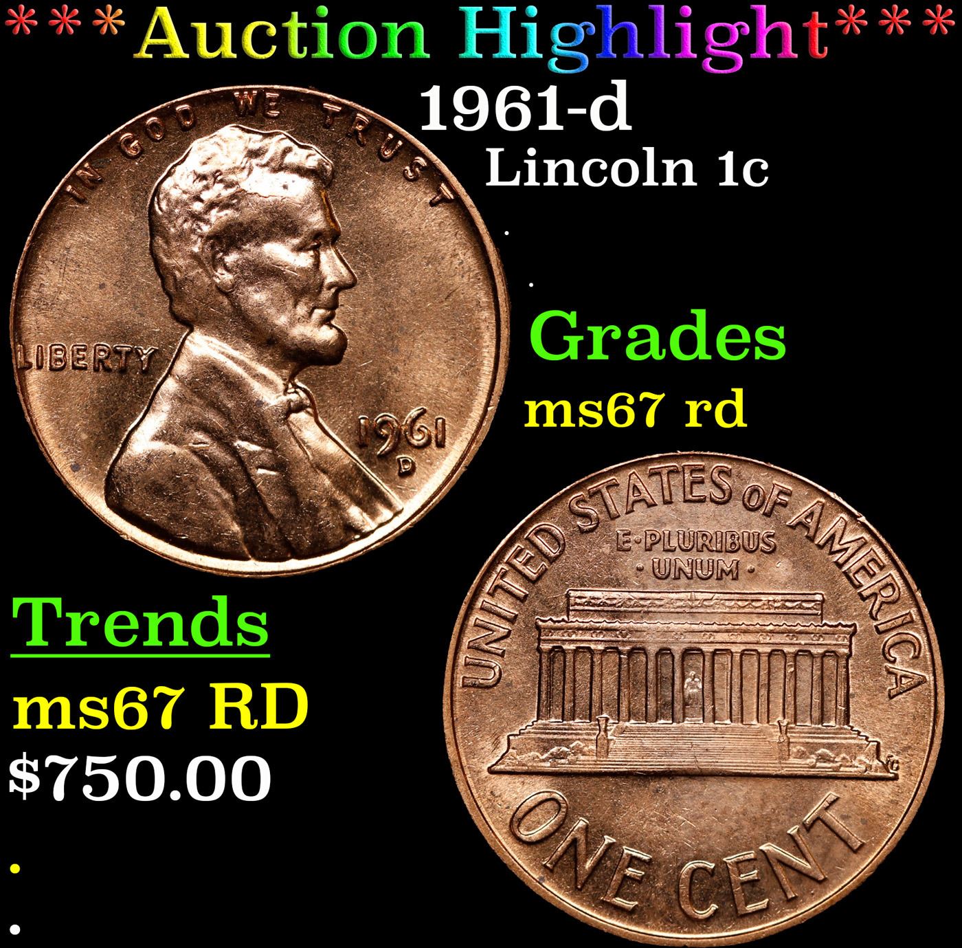 ***Auction Highlight*** 1961-d Lincoln Cent 1c Graded GEM++ Unc RD By USCG.